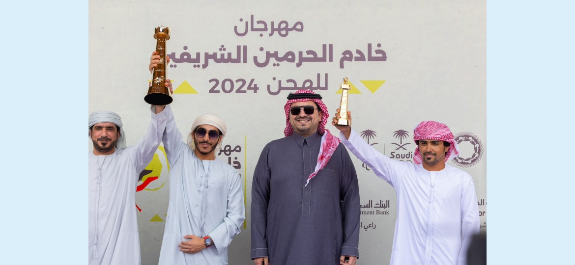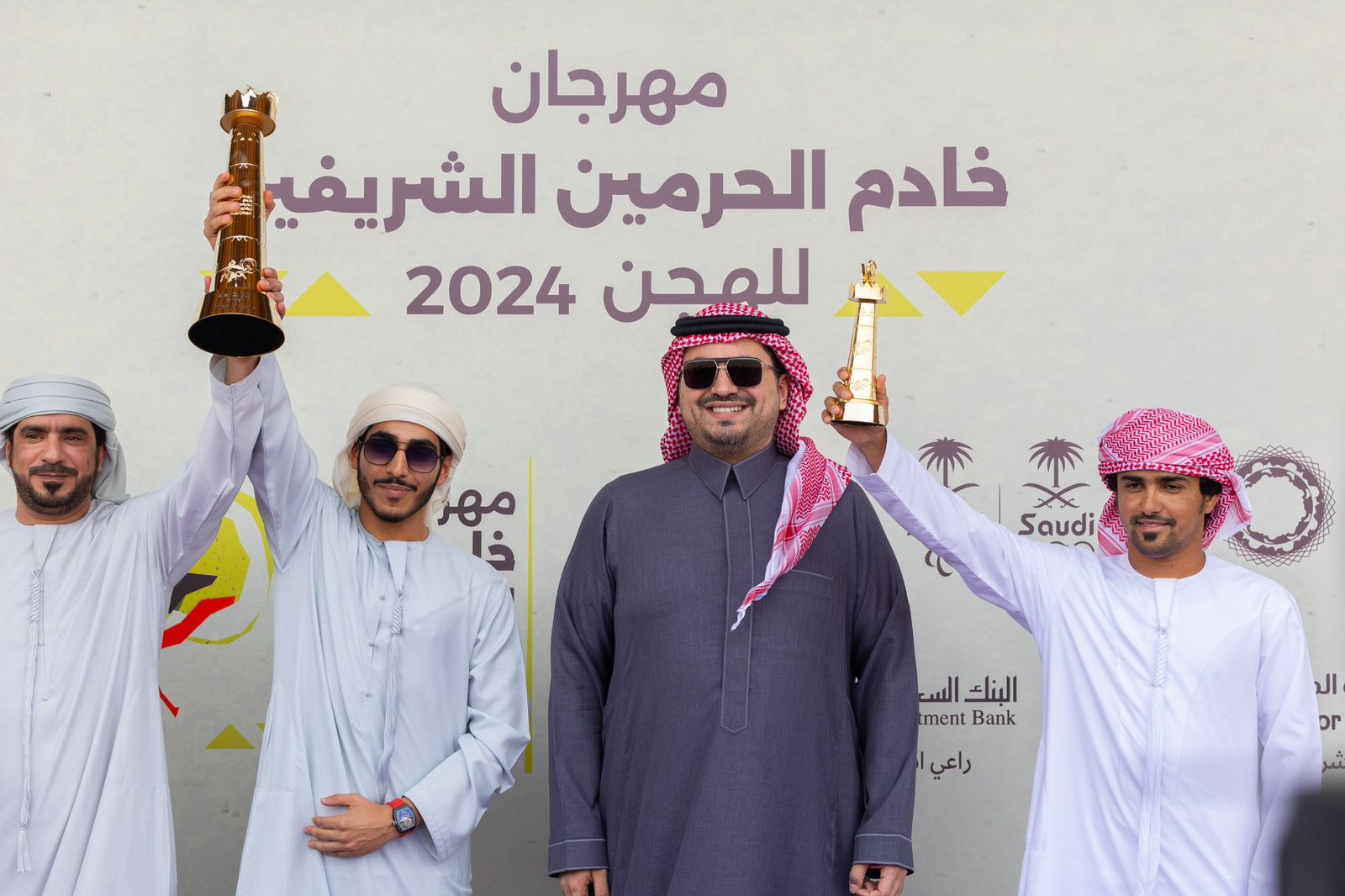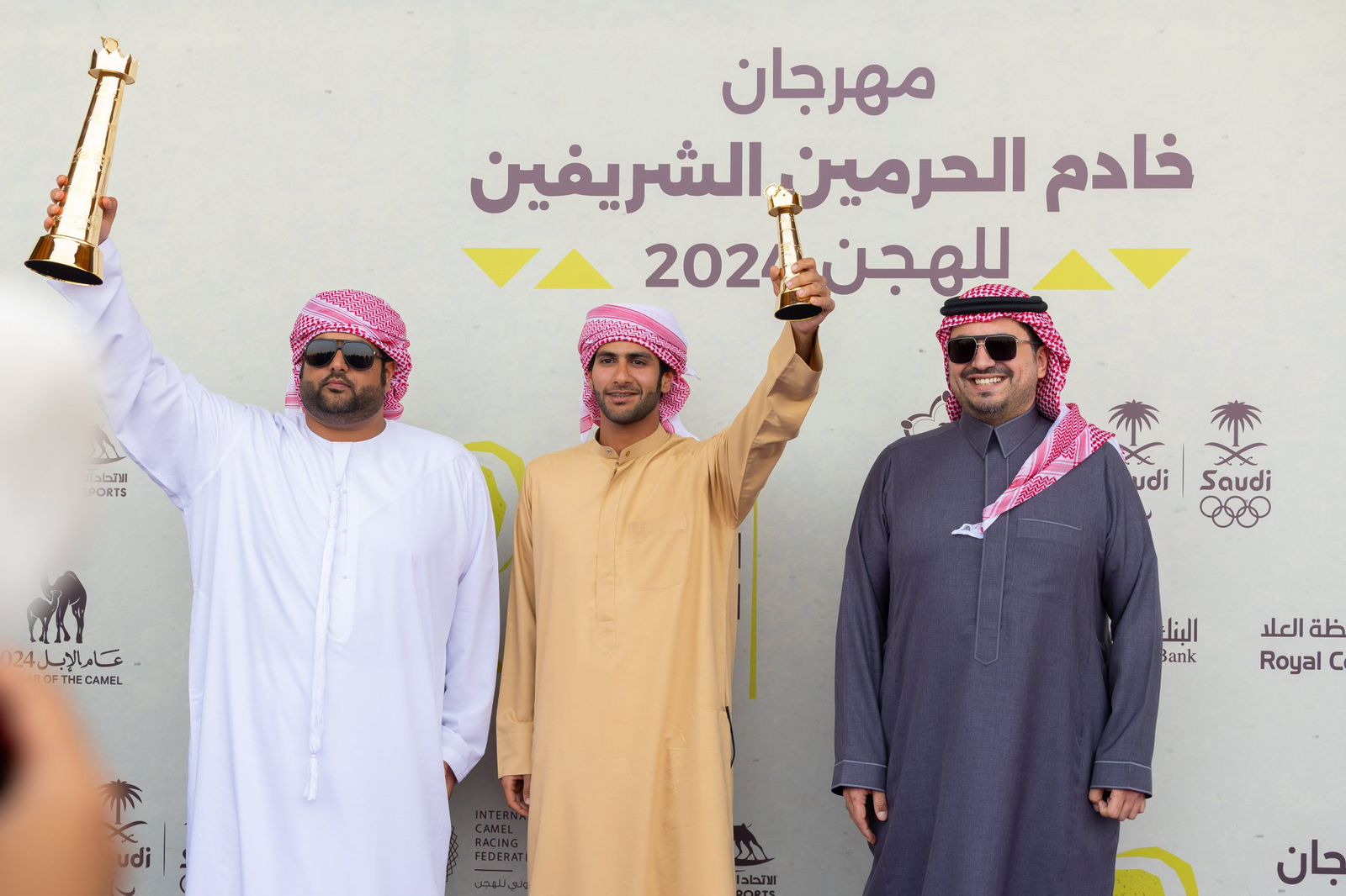 توج صاحب السمو الأمير فهد بن جلوي بن عبد العزيز بن مساعد رئيس مجلس إدارة الاتحاد السعودي للهجن اليوم الخميس، ملاك الهجن من الإمارات والسعودية الفائزين بألقاب أشواط رموز مهرجان خادم الحرمين الشريفين للهجن في فئة الـ "ثنايا"، والذي انطلقت نسخته الأولى ونظمه الاتحاد السعودي للهجن من الثامن من شهر فبراير الجاري، على أرض ميدان الجنادرية في مدينة الرياض.
