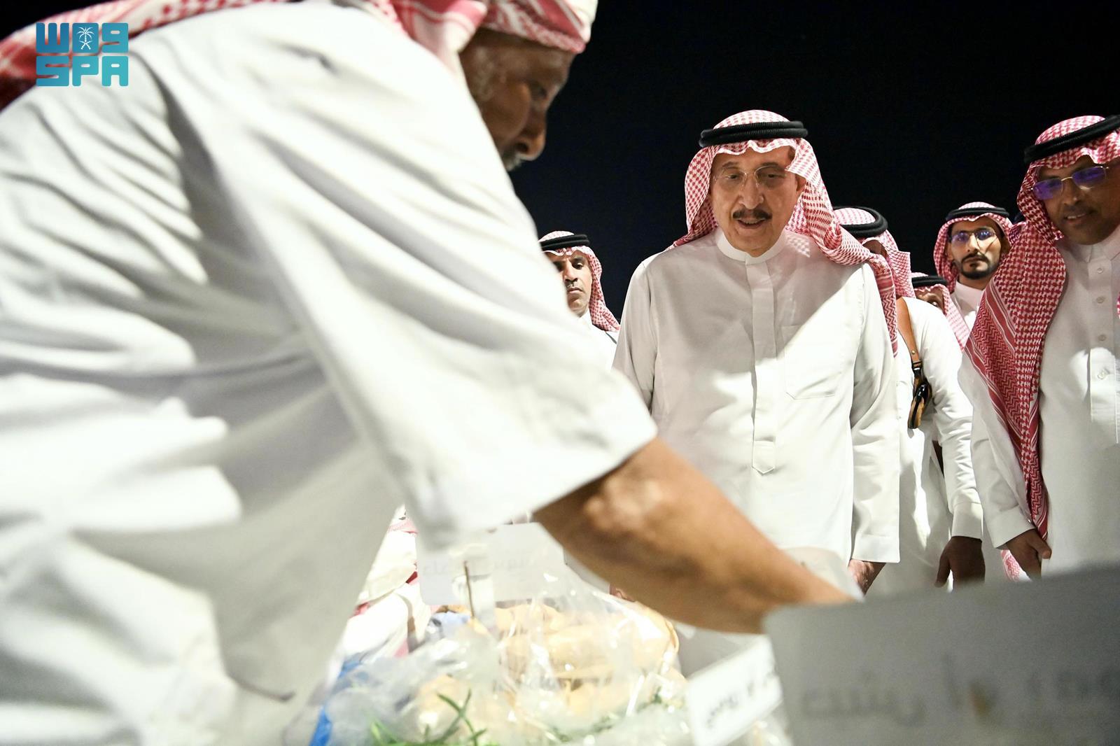 وتجول سموه في مختلف الأركان المتخصصة التي قدمت عرضًا للموروثات القديمة في محافظة صامطة، منها ركن الفن التشكيلي وركن الحناء وركن العضية والركن الثقافي وركن المنتجات الزراعية التقليدية من الذرة الرفيعة والدخن والسمسم، وحلويات زمان التي اشتهر الأهالي بصناعتها قديمًا مثل المشبك والحلقوم والجلجلان.
