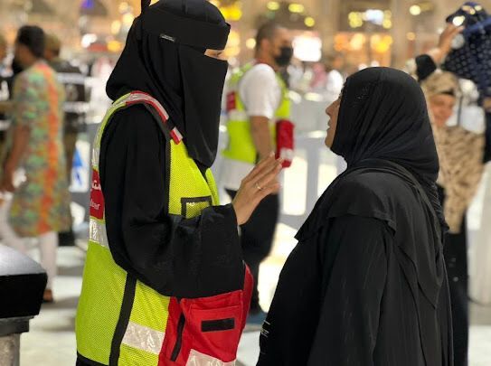 ويعمل (1100) متطوع في (22) منطقة داخل الحرمين الشريفين على عمليات الإخلاء والإنقاذ لمن تستلزم حالتهم ذلك ونقلهم إلى أماكن آمنة، والتعامل مع المخاطر من خلال التدخل السريع في الحالات الطارئة، والتوعية الوقائية في المواقع التي تشهد كثافة عالية.