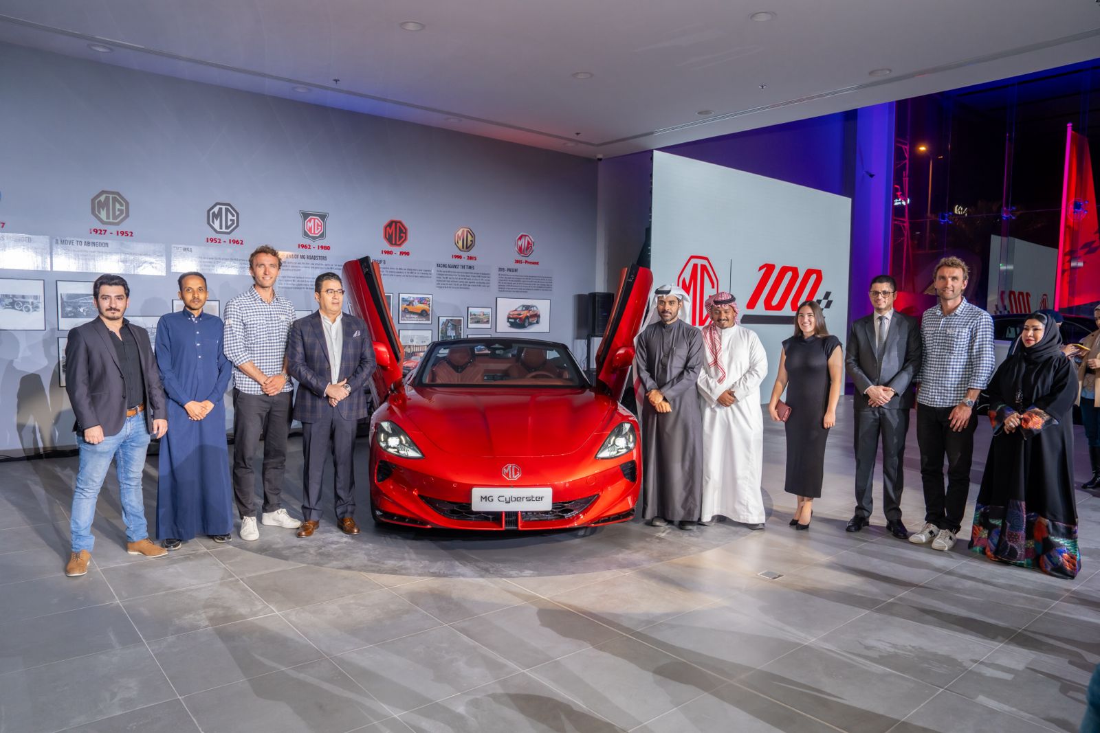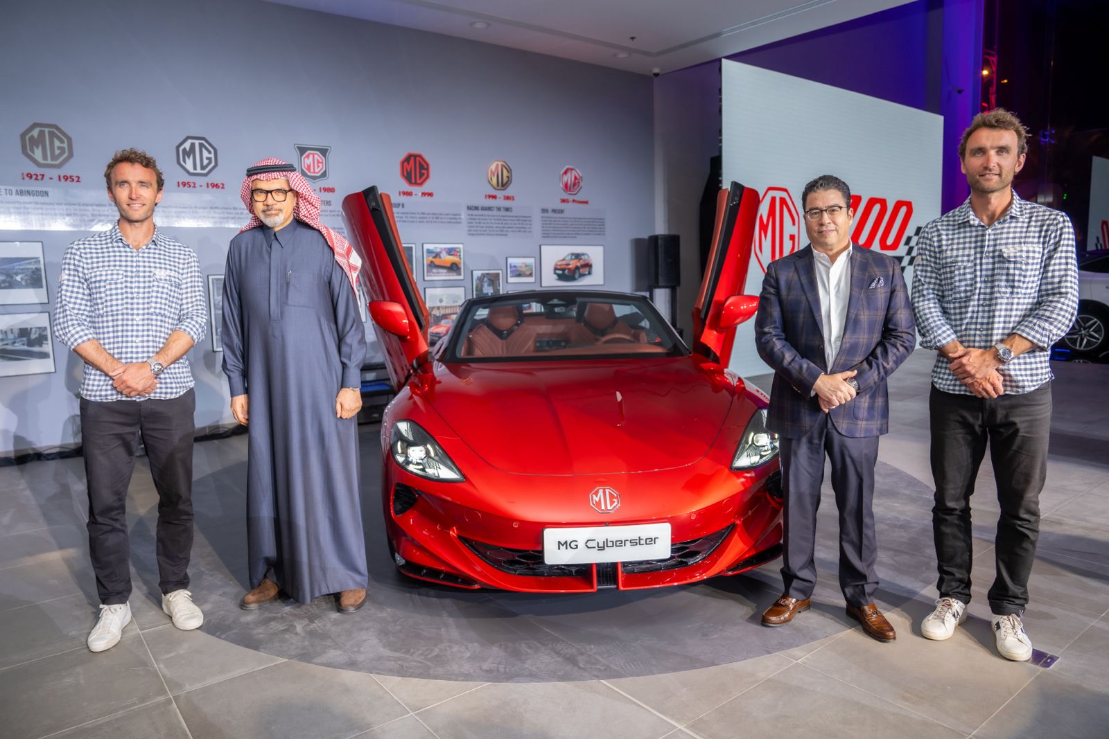 وبهذه المناسبة احتفلت شركة جياد الحديثة للسيارات إحدى شركات محمد يوسف ناغي، والموزع الرسمي لعلامة إم جي بالمملكة، بالتعاون مع المكتب الإقليمي لشركة إم جي في منطقة الشرق الأوسط وشمال أفريقيا، بوصول السيارة الأحدث في فئتها "إم جي "Cyberster، أول سيارة رياضية كهربائية بالكامل للمملكة العربية السعودية، وذلك في حفل كبير أقيم في معرضMG بالعاصمة السعودية الرياض لتدشين مرور العلامة على 100 عام من التميز والنجاح. وحضر الإفتتاح المهندس إيهاب الفقي المدير التنفيذي لشركة جياد الحديثة للسيارات، و التوأم روس وهوغو تارنر، ونخبة من رجال الأعمال، ولفيف من ممثلي الاعلام ووسائل التواصل الاجتماعي.