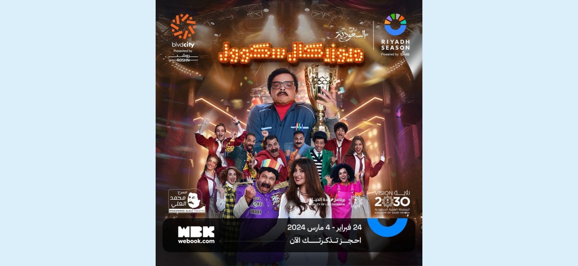 يقدم نجم الكوميديا الكبير محمد هنيدي لزوار موسم الرياض عروض مسرحيته الجديدة "ميوزيكال سكوول" التي تنطلق 24 فبراير الجاري على خشبة مسرح محمد العلي في منطقة بوليفارد سيتي، إحدى مناطق موسم الرياض الترفيهية، وهي مسرحية اجتماعية ساخرة مليئة بالمواقف والأوقات المضحكة التي تبهج الزوار.