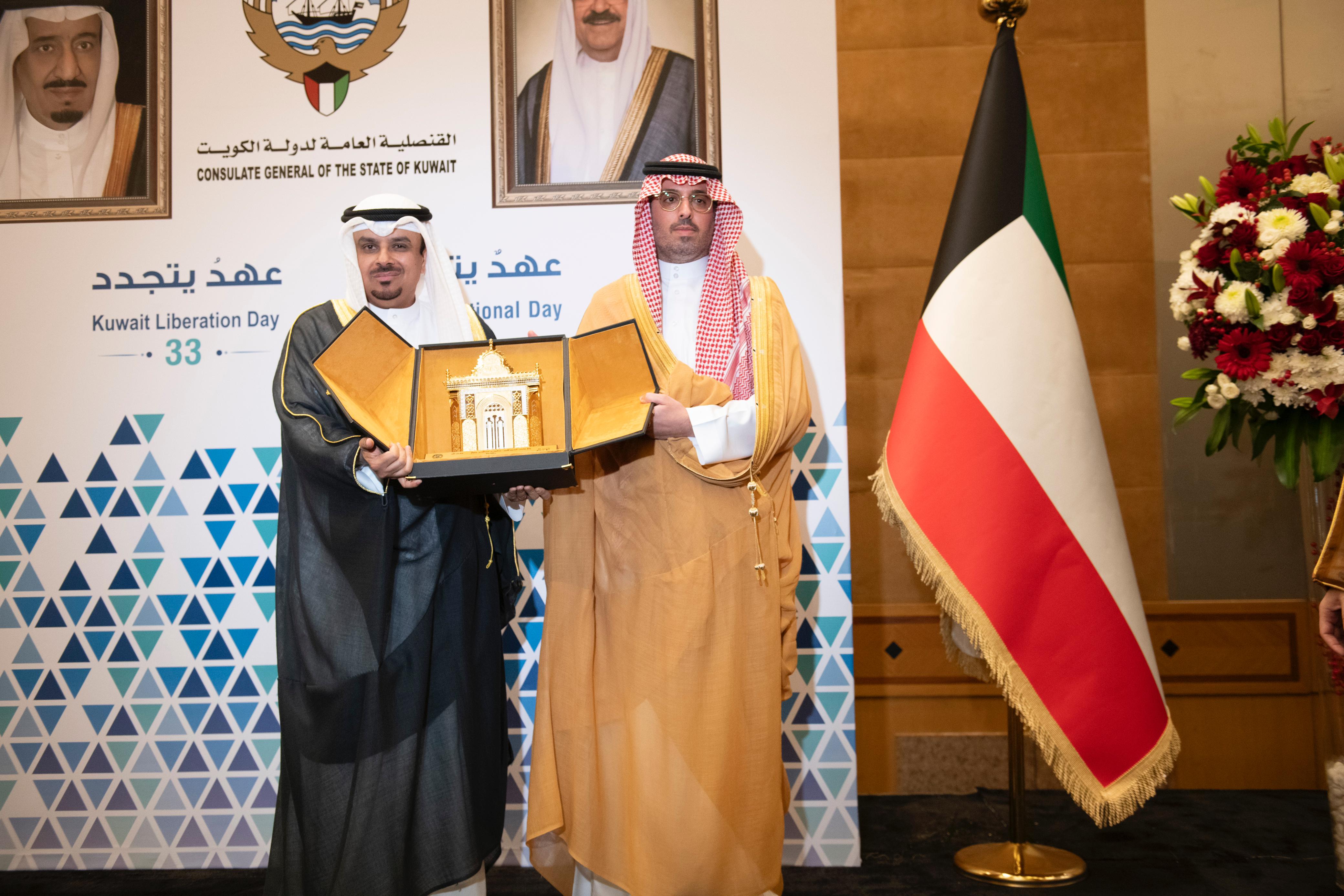 وكان في استقبال سموِّه لدى وصوله مقر الحفل القنصل العام لدولة الكويت بجدة المندوب الدائم لدى منظمة التعاون الإسلامي بجدة محمد سعود المطيري، والعديد من المسؤولين بالقنصلية العامة لدولة الكويت بجدة.