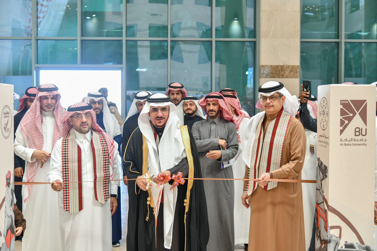 ودشن معالي رئيس جامعة الباحة المعرض المصاحب للاحتفال بيوم التأسيس اشتمل على عدد من الأركان التعريفية التي تحكي تاريخ الدولة السعودية وأمراءها وركن العلم الذي استعرض الراية الوطنية وملحقاتها كما اشتمل على ركاناً للخط العربي والفنون التشكيلية والأكلات الشعبية وجدارية مهرجان اللون التشكيلية ومتحفاً يضم عدد من القطع الأثرية بمشاركة متحف الأخوان ومتحف الأصالة.