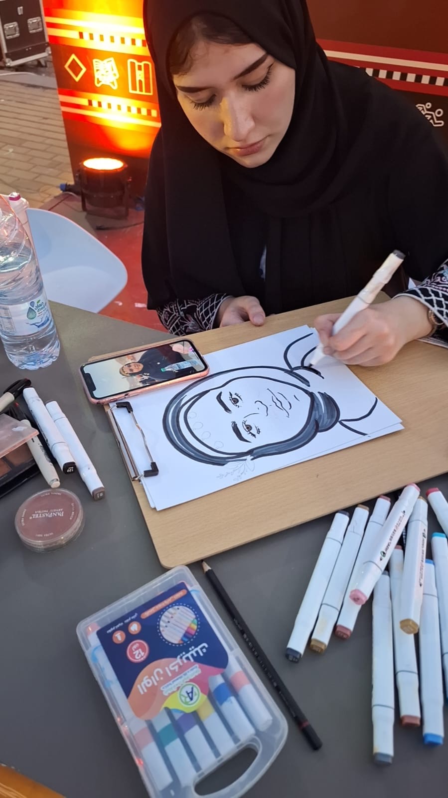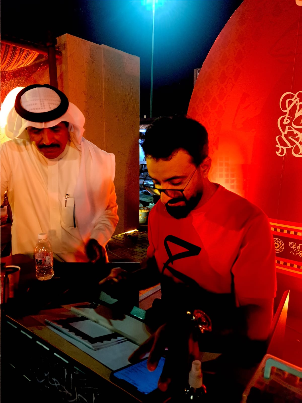 اطلقت الهيئة الملكية لمدينة مكه المكرمة والمشاعر المقدسة فعالياتها ليوم الخميس ٢٢ نوفمبر بمناسبة يوم التأسيس لهذا الوطن الشامخ وذلك بموقع الهيئة بممشى مزدلفة في نسختها الثانية تحت شعار "مكه تجمعنا" بالإضافة لفعالية خاصرة عين زبيدة أحد المعالم التاريخية بمكة الموغلة في القدم وتأتي هذه الفعاليات بالشراكة مع أمانة العاصمة المقدسة والغرفة التجارية بمكه وشركة البلد الأمين وبرنامج خدمة ضيوف الرحمن ومركز تاريخ مكة المكرمة وشركة كدانة للتطوير والتنمية وكان التنظيم والتجهيزات على أكمل وجه وكانت صحيفة النهار متواجدة بموقع الهيئة لتغطية هذه الفعالية من خلال مندوبها المحرر الثقافي وشاهدنا في مدخل الموقع مجلس من بيت الشعر وأحد الشباب يحمل الصقر فوق يده وهذا المنظر له دلالة رمزية يرمز لهذا اليوم العظيم من أيام وطننا المجيدة وله دلالة على الكرم في إكرام الضيف ويرمز لتراثنا المتجذر عبر مئات السنين للأباء والأجداد ووضعت جدارية للزوار ليتفاعلو بالتشكيل عليها وهي تعبر عن تراث عريق لفن حياكة السدو المطرز اليدوي بالجزيرة العربية قديما والمملكة هي إمتداد لهذا التراث العريق كما وضع مرسم كبير للزوار بمساعدة من عدة فنانين تشكيليين ووضعت أجنحة عبارة عن أكشاك لتقام فيها أي فعالية ولأننا نهتم بالجانب الثقافي أخذنا جولة على المعرض وكانت البداية مع الفنانة التشكيلية المبدعة الأستاذة نهله الحربي والتي هيئة لها الهيئة موقع لعرض لوحاتها الفنية والأستاذة نهلة كان جناحها من الأجنحة التي تلفت نظر الزائر لعرضها لبعض اللوحات المعبرة ولها دلالتها الرمزية ومنها لوحة فنية لخادم الحرمين الملك سلمان بن عبدالعزيز حفظه الله وهو يقبل العلم وكانت من اللوحات الجميلة والتي أبدعت فيها وأضفت جمال على الفعالية وتقول بأنها إستخدمت الألوان الزيتية على لوح من النحاس الخام الذهبي وتقول جاء إختيارها للون الذهبي دلالة على التألق والقيادة والثقة وهو لون الفخامة والنجاح والإنجاز والإنتصار وبعدها إنتقلنا لجناح الخطاط الماهر ذو الخط الجميل الأستاذ أحمد الزهراني ووجدناه متفاعل مع الزوار بتلبية رغباتهم في كتابة ما يطلبونه في هذا الفن العريق والذي يجيد جميع انواع هذا الخط والذي يعود للواجهة بالمناسبات والذي برع فيه خطاطين عرب منذ بداية تألقه في العهد الأموي وعرض علينا نماذج من أعماله وإلتقينا بجناحه الفنان التشكيلي الخلوق والصحفي العتيق المحرر الفني بصحيفة المدينة الأستاذ خير الله زربان وتجاذبنا معه الحديث وبالقرب من جناح الخط العربي توجهنا لفتاة رسامة من أهلنا من فلسطين الحبيبة وعرفتنا بإسمها هي الأستاذة ليندا الحداد والتي إستقبلتنا بالترحيب وبكل بشاشة ومعها والدتها واختها الصغرى يساعدانها وهي تقوم برسم اي زائر لجناحها يطلب منها ذلك وفي الحقيقة ليندا لديها الموهبة في هذا الفن الراقي وطلبنا منها تزويدنا بأحد أعمالها الفنية فلم تمانع وبكل سرور منها في الحقيقة الهيئة الملكية لمدينة مكة والمشاعر المقدسة قامت بمجهود كبير وواضح للزائرين من تهيأت كل مايحتاجه الزائر سواءاً فرد أو أسرة مثل مناشط ترفيهية ورياضية للأطفال وللكبار وكان التنظيم أكثر من رائع بإنسيابية في الدخول والخروج وذلك بهمة شباب الوطن من شباب وشابات ويستقبلون الزوار ويخدمونهم بكل سعادة وسرور والإبتسامة تعلو محياهم فكان هذا إنطباعنا عن هذه الفعالية