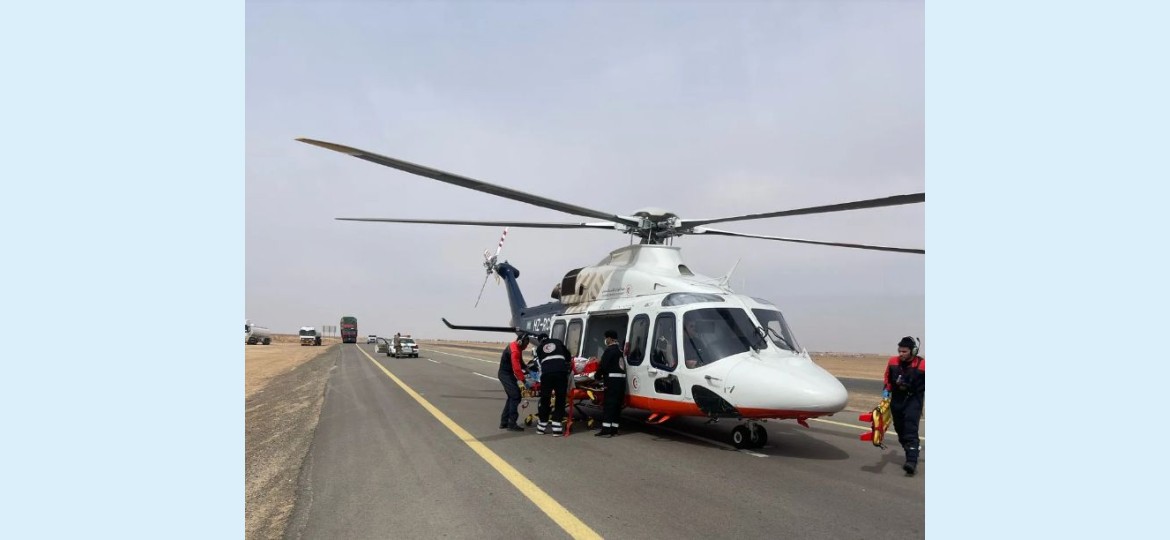 ووصلت فرقة الإسعاف الجوي للموقع في غضون 40 دقيقة فيما تم نقل الحالة للطوارئ في 35 دقيقة.