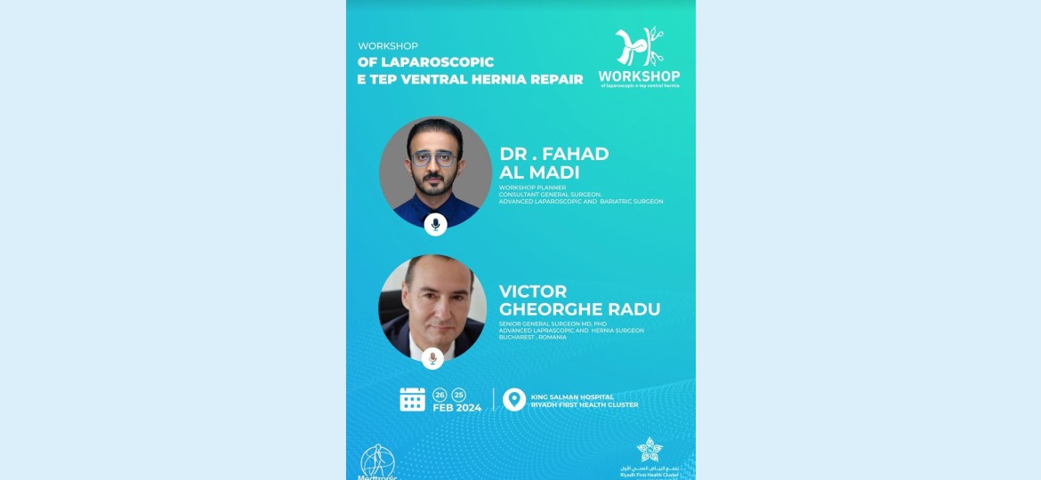 والذي ينظّمه مستشفى الملك سلمان عضو تجمع الرياض الصحي الأول ويستمر لمدة يومين ، حيث يستضيف المؤتمر الجراح العالمي الدكتور رادو فيكتور للاستفادة من خبراته في مجال التطورات الحديثة في جراحة المناظير وهو يعمل على عمليات الروبوت الآلي في جراحة المناظير بإصلاح الفتوق الجراحية بين جدار عضلات البطن وتعتبر جديدة على مستوى المملكة وليست بالطريقة التقليدية التي يتم فيها إصلاح الفتق عن طريق الفتح او من خلال تجويف البطني .