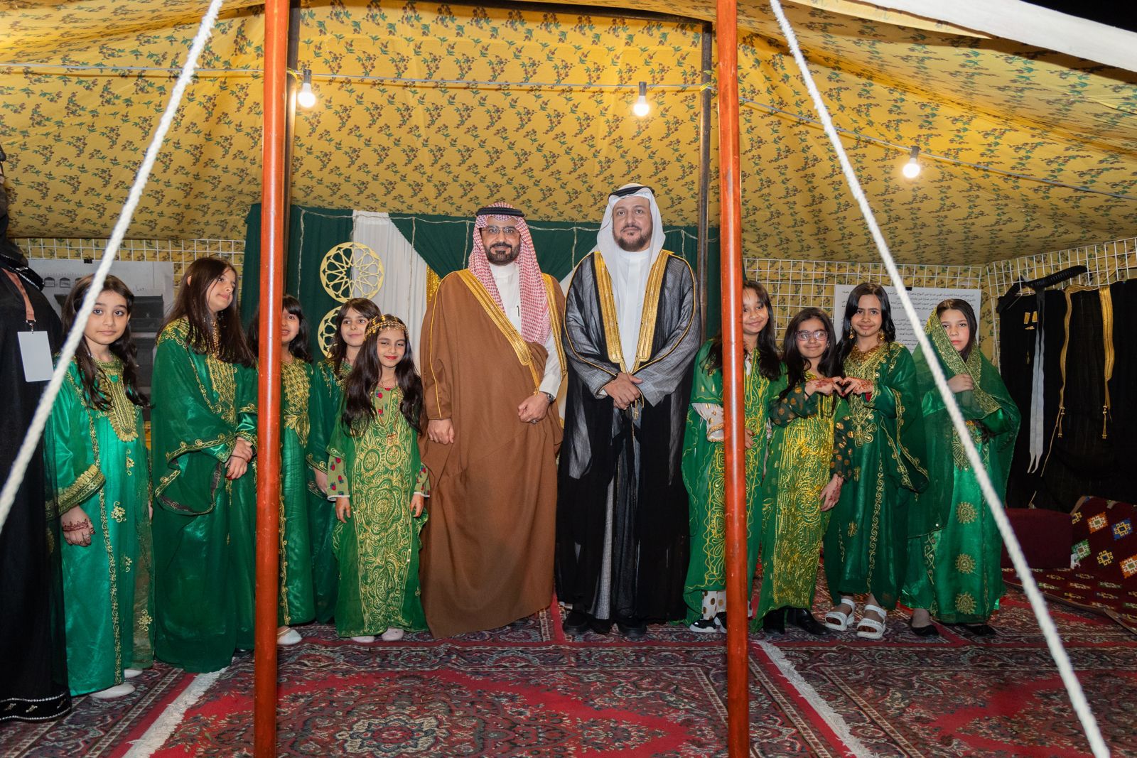 بدأ الاحتفال بالعرضة السعودية، وتجول سعادته في مرافق الفعالية وهي (خيمة الأئمة والملوك، وخيمة مصيحة، وخيمة ثقافة التأسيس، وخيمة نقوش)، وكما بدأ الحفل الخطابي بالقرآن الكريم، ومن جهته أعرب الدكتور محمود الحليبي عن شكره وتقديره لسمو محافظ الأحساء لرعايته حفل الجمعية بمناسبة يوم التأسيس ولسعادة وكيل المحافظة لحضوره، ولكافة من شارك جمعية أدباء احتفالية هذا اليوم الغالي علينا جميعا