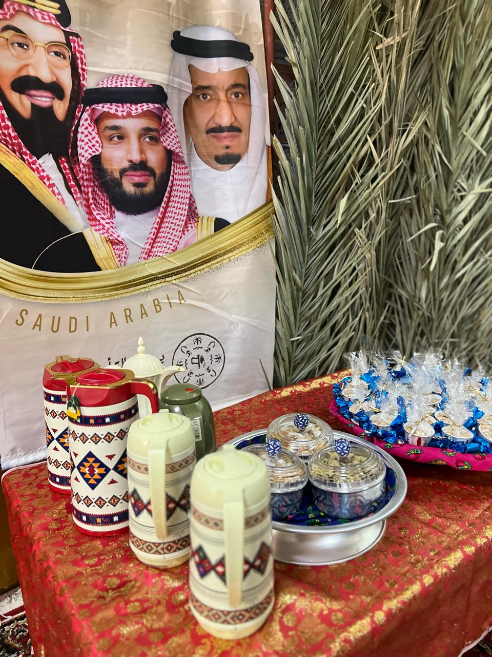 هذا اليوم الذي توحدت فيه الدولة السعودية الأولى بتاريخ 22 / 2 / 11727 وازدهرت واستقرت حيث نسق قسم البرامج والأنشطة قاعة الحفل بأركان متعددة ومنها ( سوق الخميس وركن الخبازة وركن المأكولات الشعبية وركن القهوة وركن الحناء ) وافتتح الحفل بكلمة لمديرة المؤسسة نورة بنت عبدالرحمن آل الشيخ مبارك وساد الطابع التراثي على الحفل ليشارك الحضور من مستفيدات ومنسوبي المؤسسة فقراته والتي تضمنت عرضاً مرئياً بعنوان ( يوم بدينا ) وكان للترفيه جانياً في الحفل في مشهدٍ تمثيلي تراثي ، وتعزيزاً للجانب الثقافي تم تقديم مسابقة هادفة اشتملت على تراث المملكة من مختلف مناطقها.