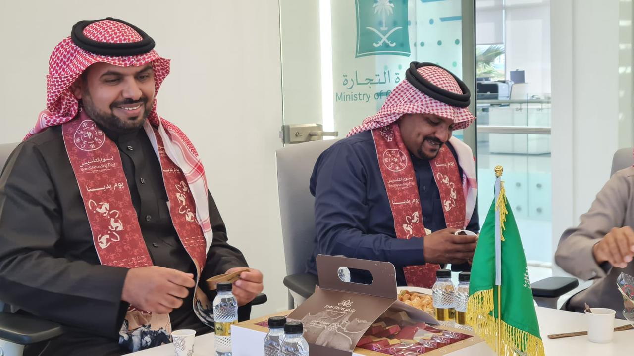 احتفل فرع وزارة التجارة بمنطقة الجوف بذكرى يوم التأسيس وذلك في مقر فرع الوزارة بسكاكا، بحضور الموظفين وقيادات فرع الوزارة الذين تبادلوا التهاني بهذه المناسبة.