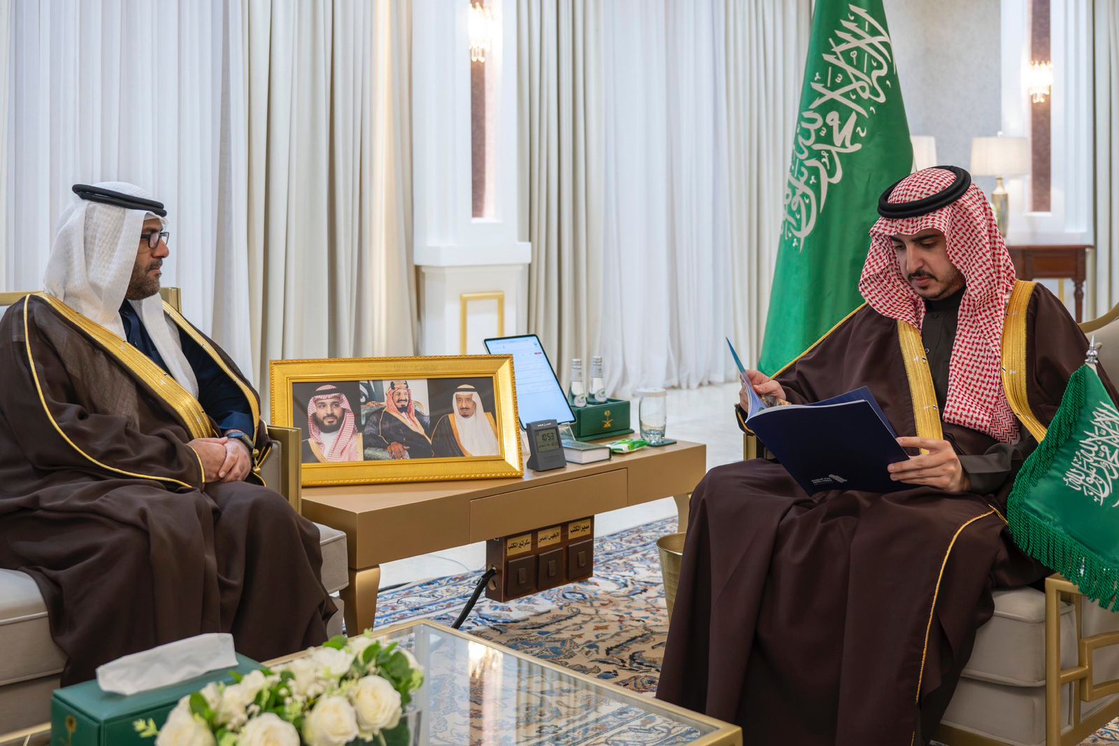 استقبل صاحب السموّ الملكيّ الأمير فيصل بن نواف بن عبدالعزيز أمير منطقة الجوف، بمكتبه اليوم، رئيس الهيئة العامة للإحصاء الدكتور فهد بن عبدالله الدوسري، يرافقه عدد من منسوبي الهيئة، ومدير فرع الهيئة بالمنطقة المهندس جارالله الشمروخي.