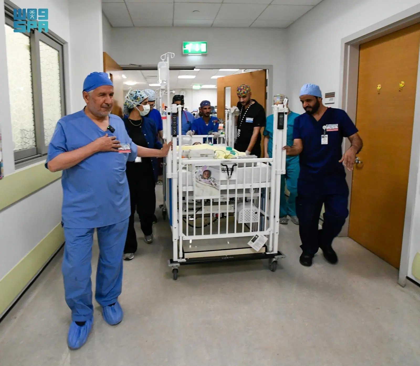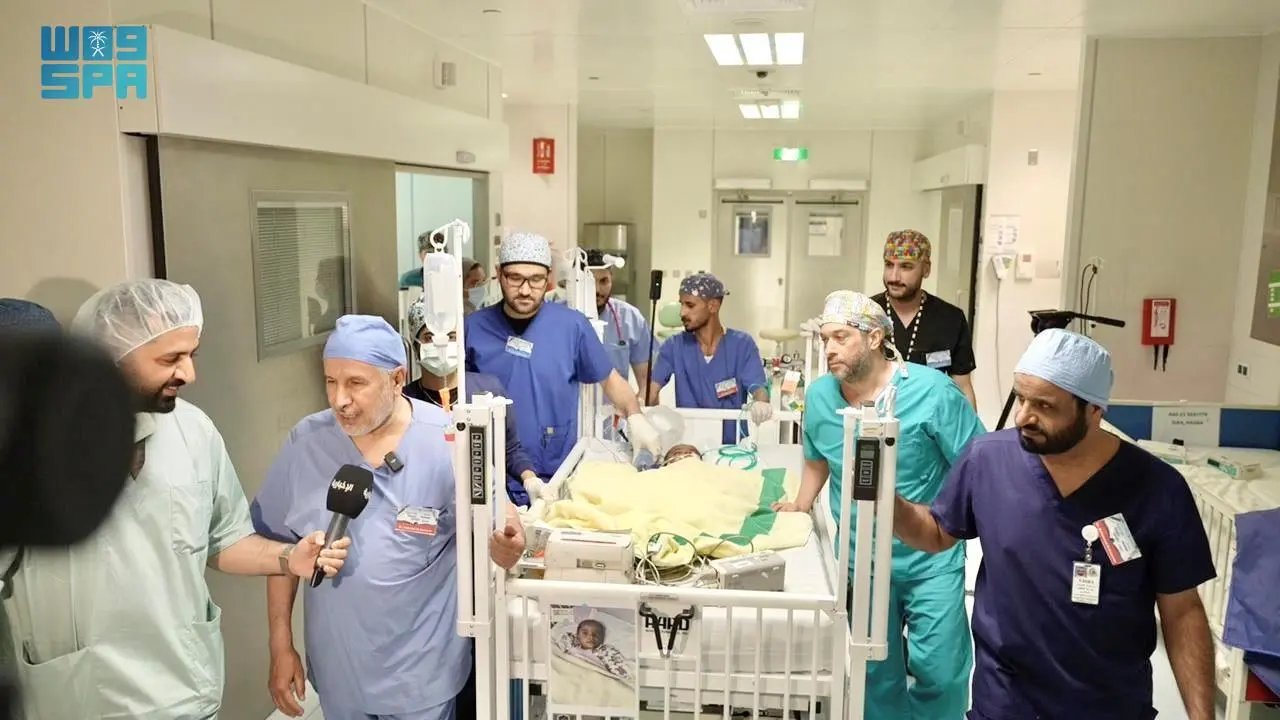 تمكّن الفريق الطبي والجراحي السعودي في عمليات فصل التوائم السيامية - بحمدالله - من فصل التوأم السيامي النيجيري "حسنة وحسينة"، وذلك بمستشفى الملك عبدالله التخصصي للأطفال بمدينة الملك عبدالعزيز الطبية للحرس الوطني بالرياض، بعد عملية جراحية معقدة استغرقت 16 ساعة ونصف نفذت على 9 مراحل، وشارك فيها 39 من الاستشاريين والمختصين والفنيين من أقسام التخدير وجراحة الأطفال وجراحة المسالك البولية وجراحة العظام وجراحة التجميل وجراحة الأعصاب للأطفال، بالإضافة إلى الكوادر التمريضية والفنية.وأوضح معالي المستشار بالديوان الملكي المشرف العام على مركز الملك سلمان للإغاثة والأعمال الإنسانية رئيس الفريق الطبي والجراحي الدكتور عبدالله بن عبدالعزيز الربيعة أن هذه العملية تأتي إنفاذا للتوجيهات الكريمة من لدن القيادة الرشيدة - أيدها الله - و تعد رقم 60 في سلسلة عمليات البرنامج السعودي لفصل التوائم الملتصقة.وأضاف معاليه أن البرنامج السعودي استطاع خلال 34 عاماً أن يعتني بـ 135 توأما سياميا من 25 دولة من الدول الشقيقة والصديقة، مؤكداً دور المملكة الريادي في العمل الإنساني بشكل عام والطبي بشكل خاص، مقدماً لزملائه أعضاء الفريق الطبي والجراحي الشكر الجزيل على جهودهم الكبيرة وعطائهم المستمر، مشيرًا إلى أن هذا الإنجاز الطبي يترجم الشعور الإنساني النبيل للقيادة الحكيمة وحرصها على تقديم الخير للإنسان أينما كان، كما يجسد التفوق الطبي السعودي؛ الذي يأتي انسجاما مع أهداف رؤية المملكة 2030 لتطوير القطاع الصحي بالمملكة، ورفع جودته وكفاءته.