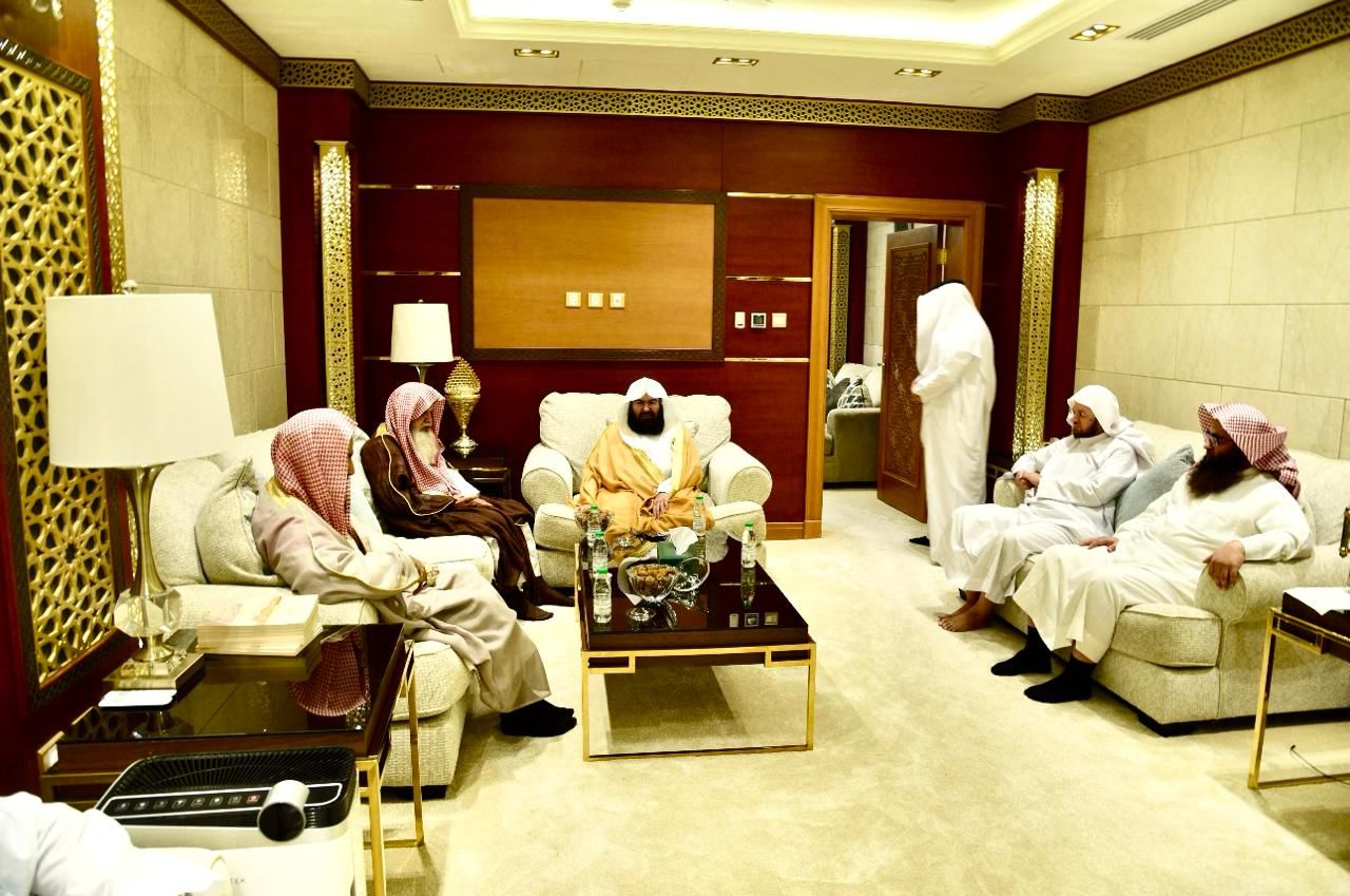 تعظيما لمبادرة تعزيز مكانة أئمة الحرمين الشريفين؛ التقى معالي رئيس الشؤون الدينية بالمسجد الحرام والمسجد النبوي؛ الشيخ الدكتور عبدالرحمن السديس ؛ مع اصحاب الفضيلة أئمة المسجد النبوي؛ حيث تم تبادل الآراء والمقترحات ؛ إزاء إعظام رسالة الحرمين الدينية ، المرتكزة على التسامح والوسطية والاعتدال؛ للبلوغ بالمستهدفات الدينية؛ فضلا عن مناقشة الاستعدادات والخطط لشؤون الأئمة لشهر رمضان المبارك .