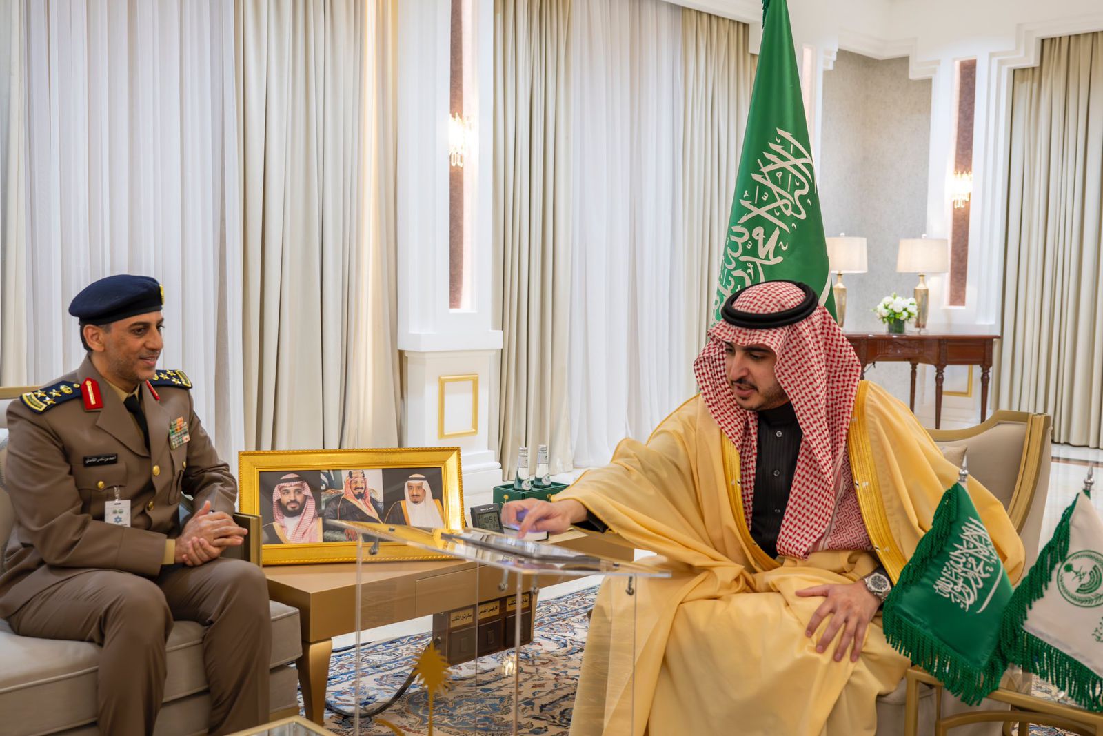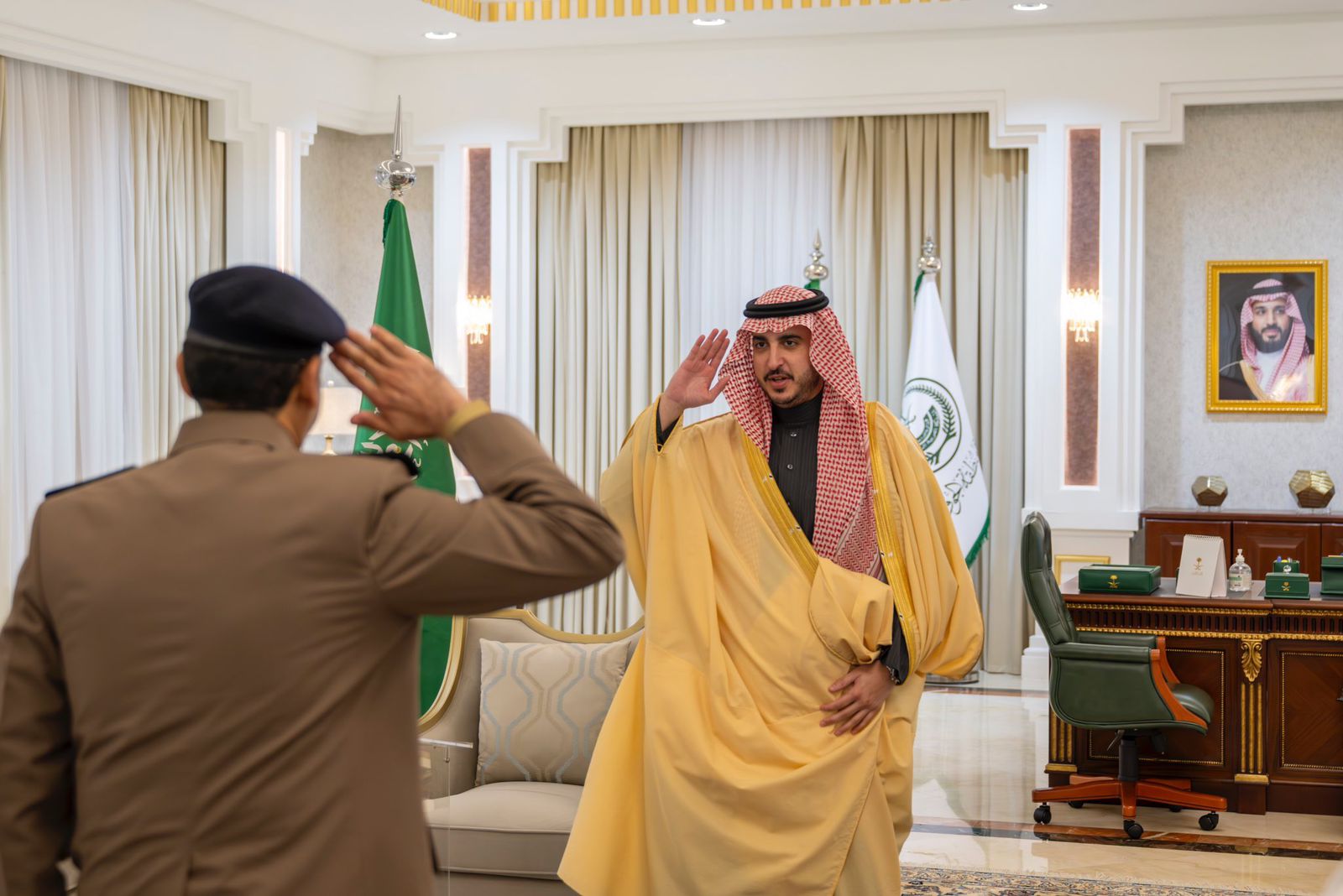 دشن صاحب السمو الملكي الأمير فيصل بن نواف بن عبدالعزيز أمير منطقة الجوف في مكتبه اليوم إلكترونياً، فعاليات اليوم العالمي للدفاع المدني 2024، الذي تنظمه مديرية الدفاع المدني بالمنطقة تحت شعار "بالتقنية نسعى لحمايتكم"، بحضور مدير الدفاع المدني بالمنطقة العميد أحمد بن ناصر الغامدي، وعدد من القيادات.