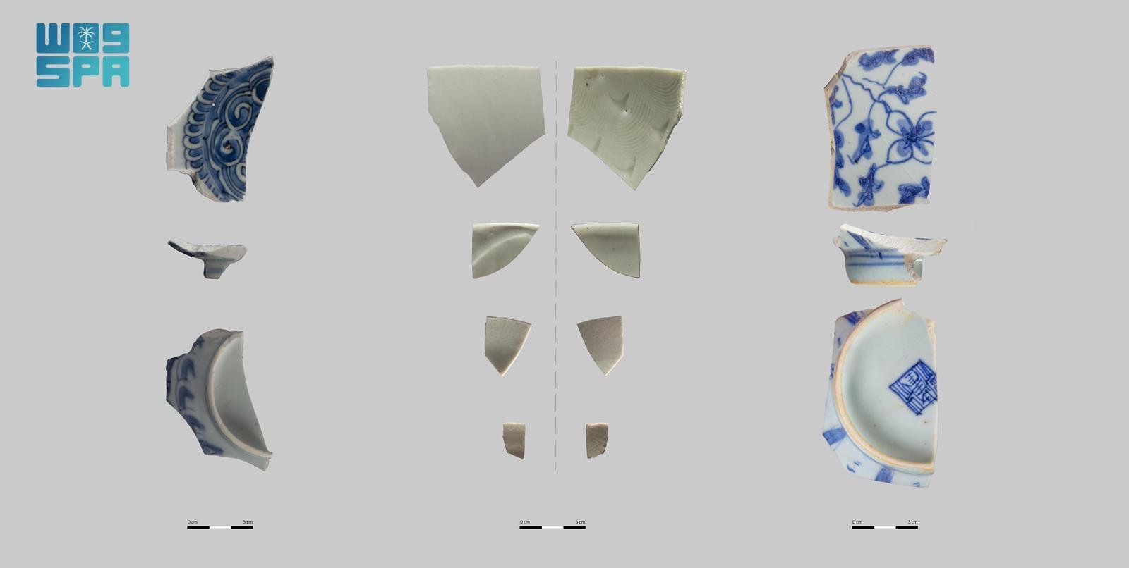 وتختزل آلاف المواد الأثرية المكتشفة في مسجد عثمان بن عفان 1200 عام من تاريخه، حيث عثر على بقايا من الخزف الصيني باللونين الأبيض والأزرق يعود تاريخها إلى القرن الـ11 الهجري (القرن 17 الميلادي)، بالإضافة إلى أواني «سيلادون» الصينية المزججة بالرمادي والأخضر يعود تاريخها إلى القرن الرابع والسادس الهجري (القرن 11 و13 الميلادي)، وشظايا فخار مزججة بالأبيض والأخضر والأصفر يعود تاريخها إلى القرن الثالث والرابع الهجري (القرن التاسع والعاشر الميلادي)، إذ تُعد من أقدم القطع الأثرية المكتشفة في المسجد، بحسب تقدير الخبراء.