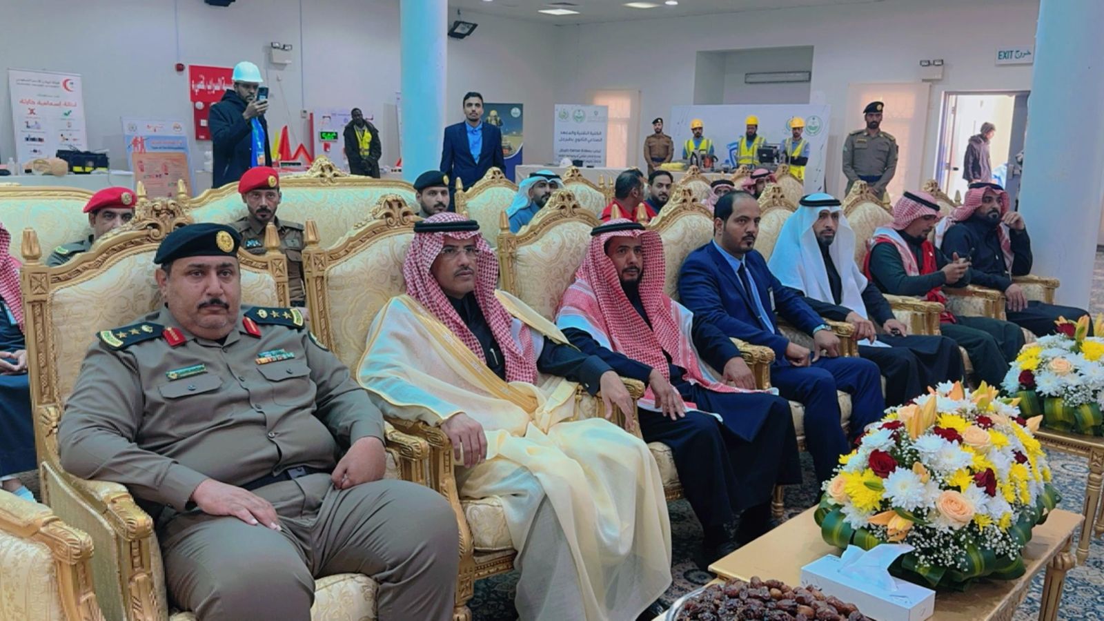 حيث قام سعادة أ. نادر بن غالب العتيبي بإفتتاح المعرض المصاحب لفعاليات اليوم العالمي وتجول داخل المعرض، ثم بعد ذلك حضر الحفل الخطابي المعد بهذه المناسبة وفي نهاية الحفل قدم سعادة أ. نادر العتيبي الدروع والشهادات التقديرية للجهات المشاركة في فعاليات اليوم العالمي للدفاع المدني.
