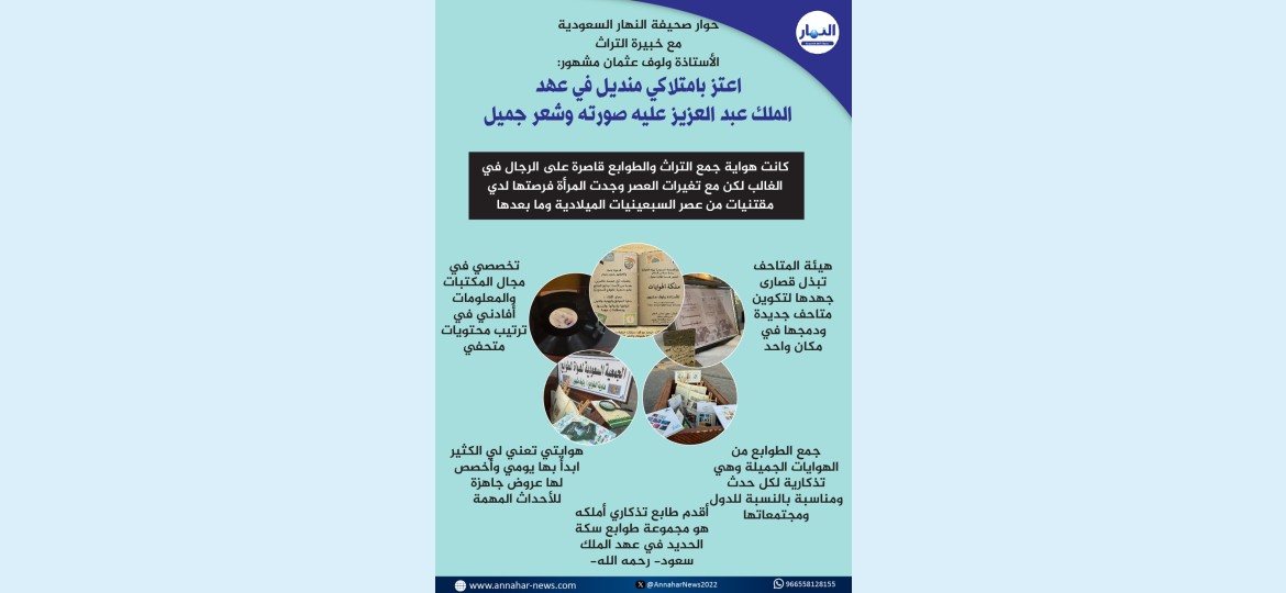 حوار صحيفة النهار السعودية مع خبيرة التراث الأستاذة  ولوف عثمان  مشهور