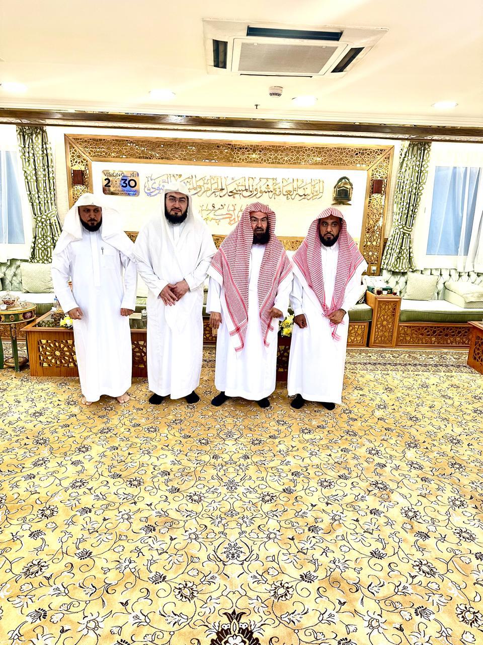 تبادل معالي رئيس الشؤون الدينية بالمسجد الحرام والمسجد النبوي الشيخ الدكتور عبدالرحمن السديس ، مع أصحاب الفضيلة أئمّةَ المسجد الحرام الآراءَ والمقترحات إزاء تعظيم رسالة الحرمين الدينية المرتكزة على التسامح والوسطية والاعتدال، للبلوغ بالمستهدفات الدينية، فضلًا عن مناقشة الإستعدادات والخطط لشؤون الأئمة لشهر رمضان المبارك.