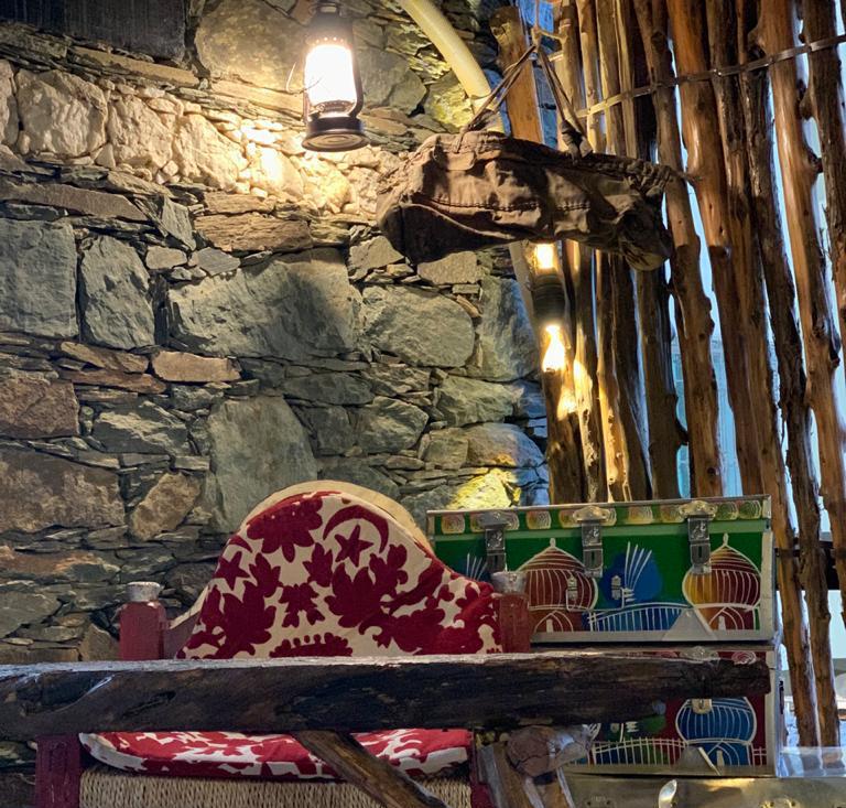 كما سرني الصعود من الدرج الخشبي المريح المجسد بالطريقة التقليدية من الواح الخشب والذي يصعد إلى الرعش وهو بهو مسقف بطريقة تقليدية وله نوافذ زجاجية وهو ذو الإطلالة الجميلة على معظم أجزاء المحافظة وطريق الجنوب بل حتى على مطار العقيق والمجهز بجلسات بها كراسي وطاولات تتسع لأكثر من مائة شخص على الأقل ويوجد بعض الحواجز الموقتة في حالة وجود زوار من العوائل والاستمتاع بالهواء الطلق وهناك دورات مياه خاصة بالرجال ودورات خاصة للنساء.