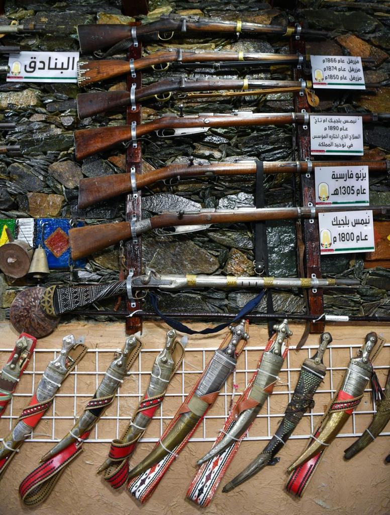 وسيوف وبنادق وجنابا ووثائق إلى ما قبل ٣٠٠عام حسب كلام المشرف على المتحف.