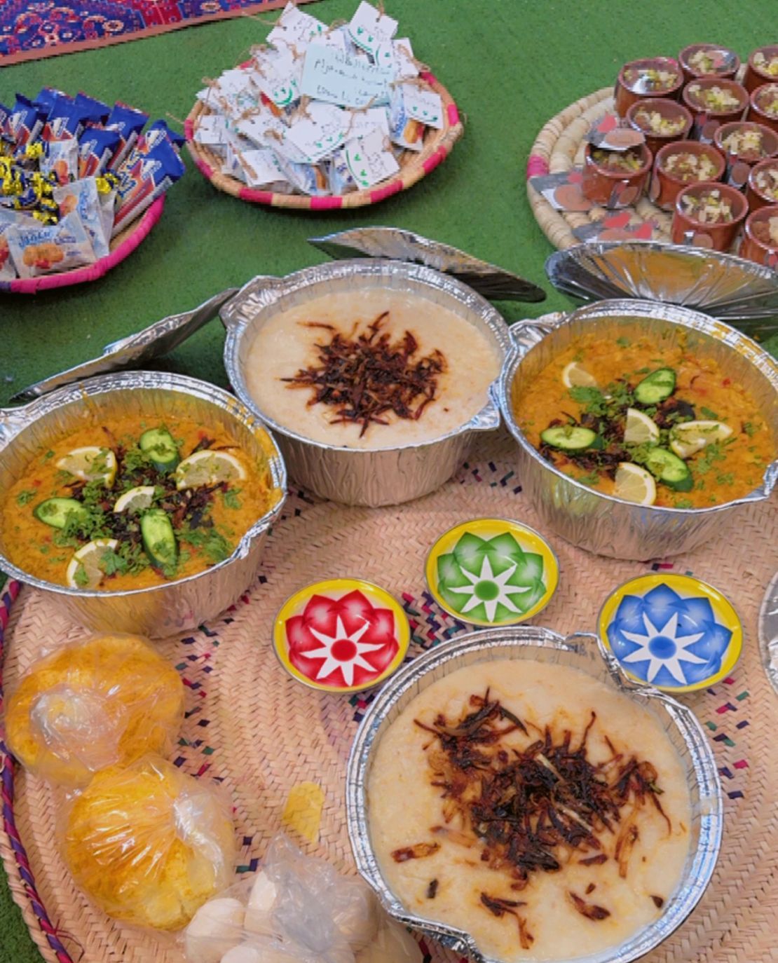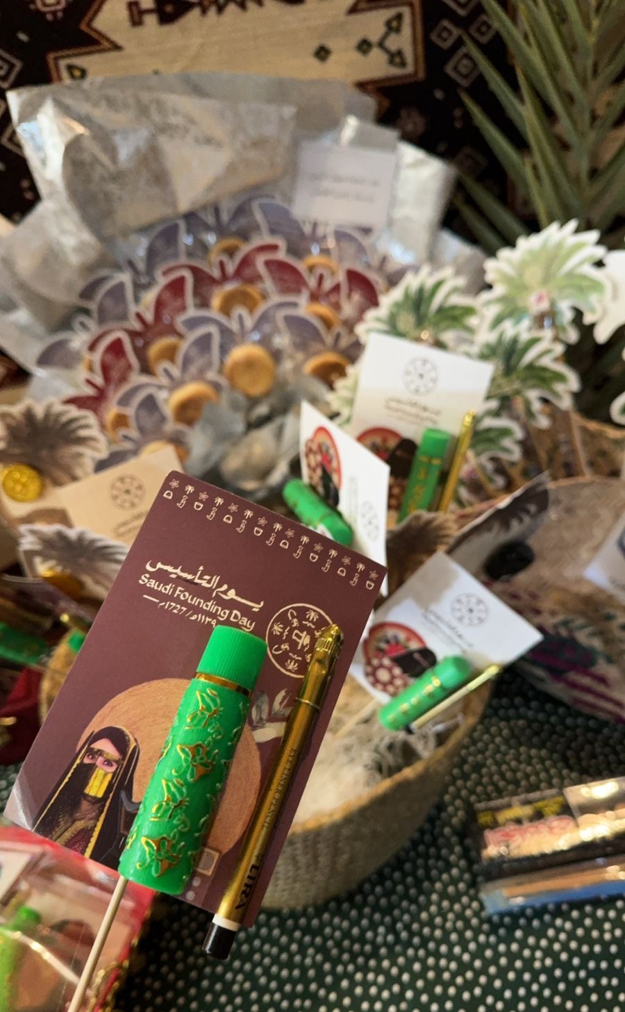 ثم المسابقات - وعرض لوحات فنية تاريخية عن تأسيس الدولة السعودية _واكلات شعبية متنوعة وارتدى الحضور ملابس تراثية متنوعة لهذه المناسبة تمثل مناطق مختلفة للمملكة العربية السعودية.
