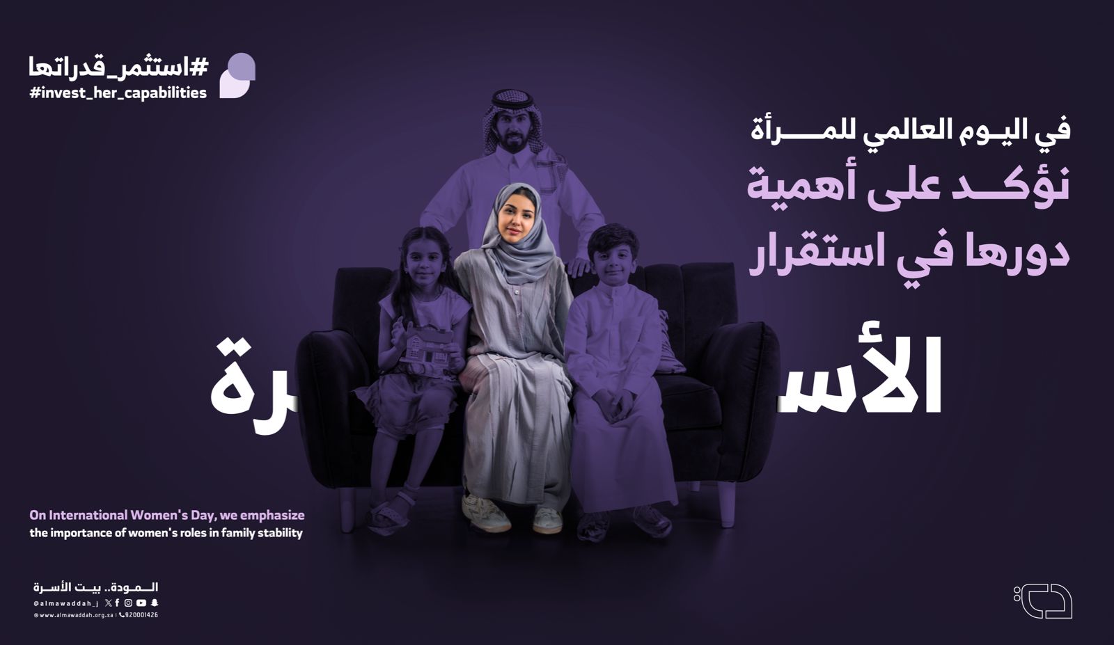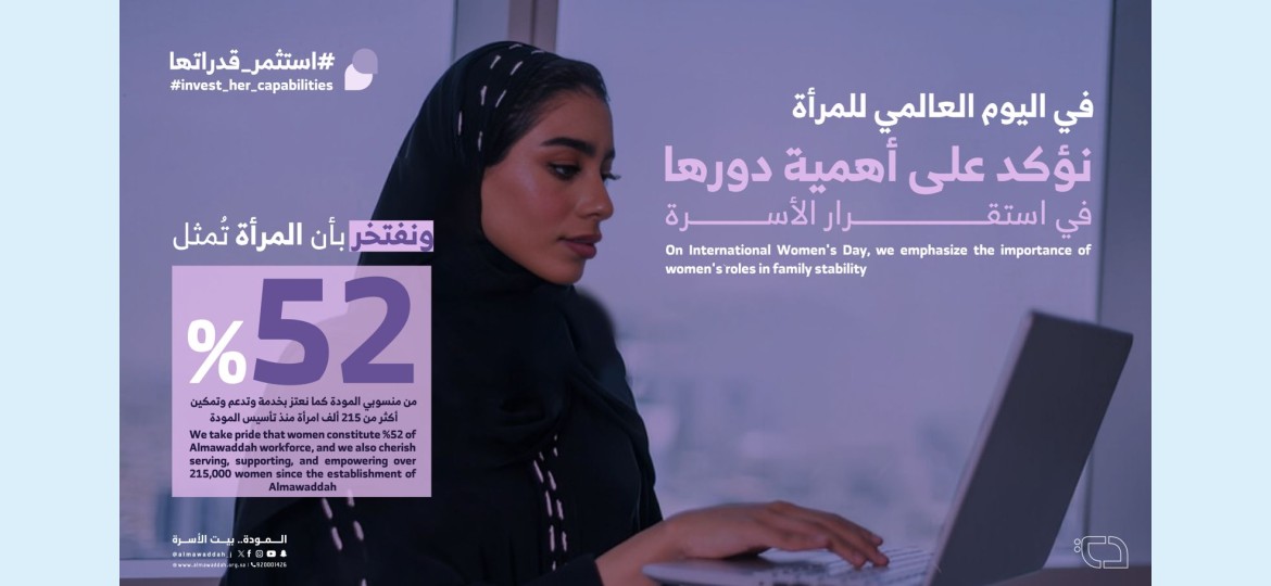 ضمن جهود جمعية المودة المستمرة في دعم وتمكين المرأة، أطلقت المودةبمناسبة اليوم العالمي للمرأة حملة تحت شعار "استثمر قدراتها" والذي يهدف إلى تعزيز استثمار قدرات المرأة لتمكينها بشكل فعال.