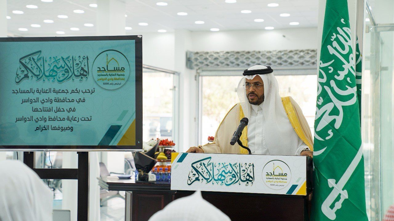دشَّن محافظ وادي الدواسر بالإنابة صالح بن سيف آل رافع، يوم أمس مقر جمعية العناية بالمساجد بالمحافظة، بحضور عدد من المسؤولين في الجهات الحكومية والتنموية، وأعضاء مجلس ادارة الجمعية، وأعضاء الجمعية العمومية.