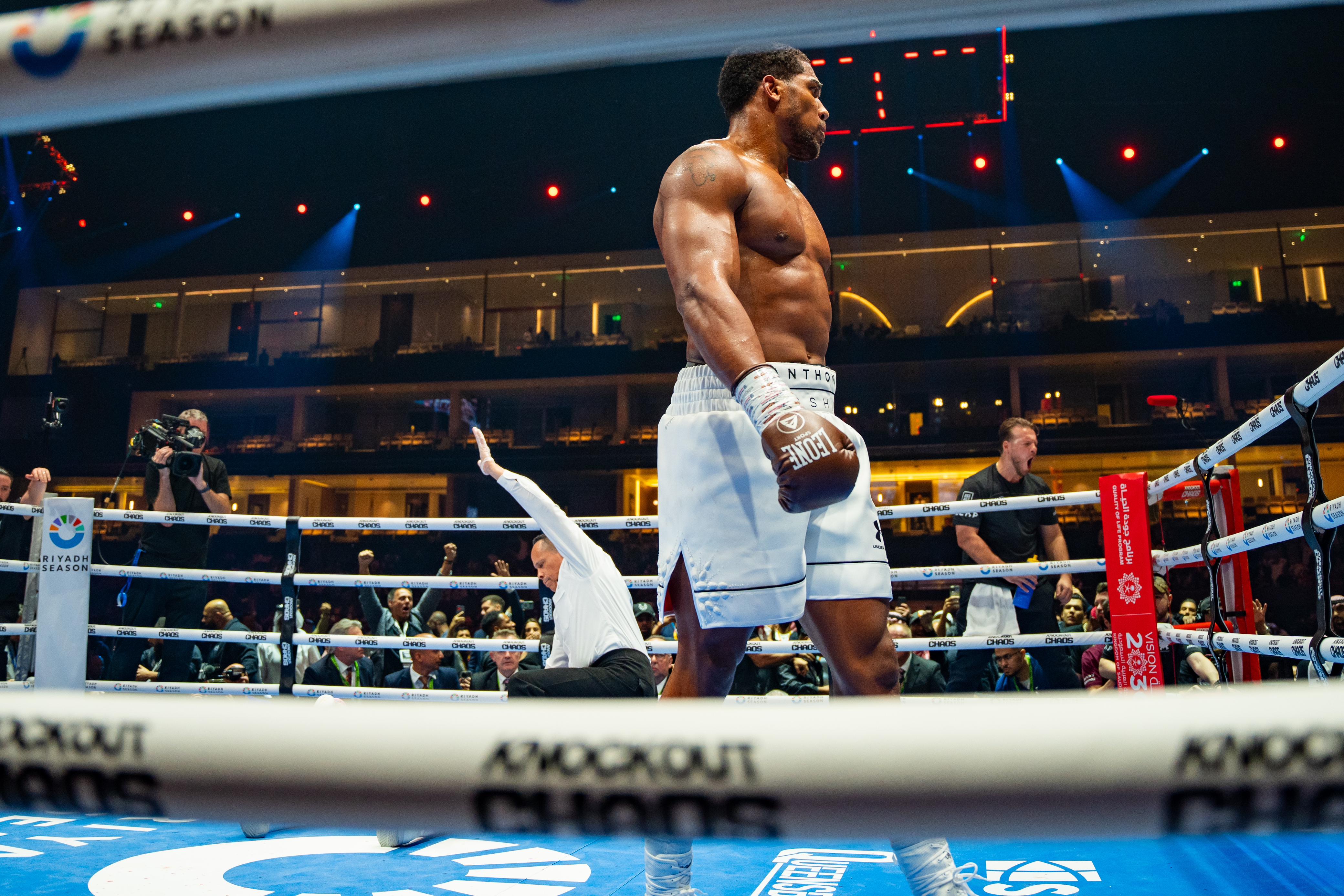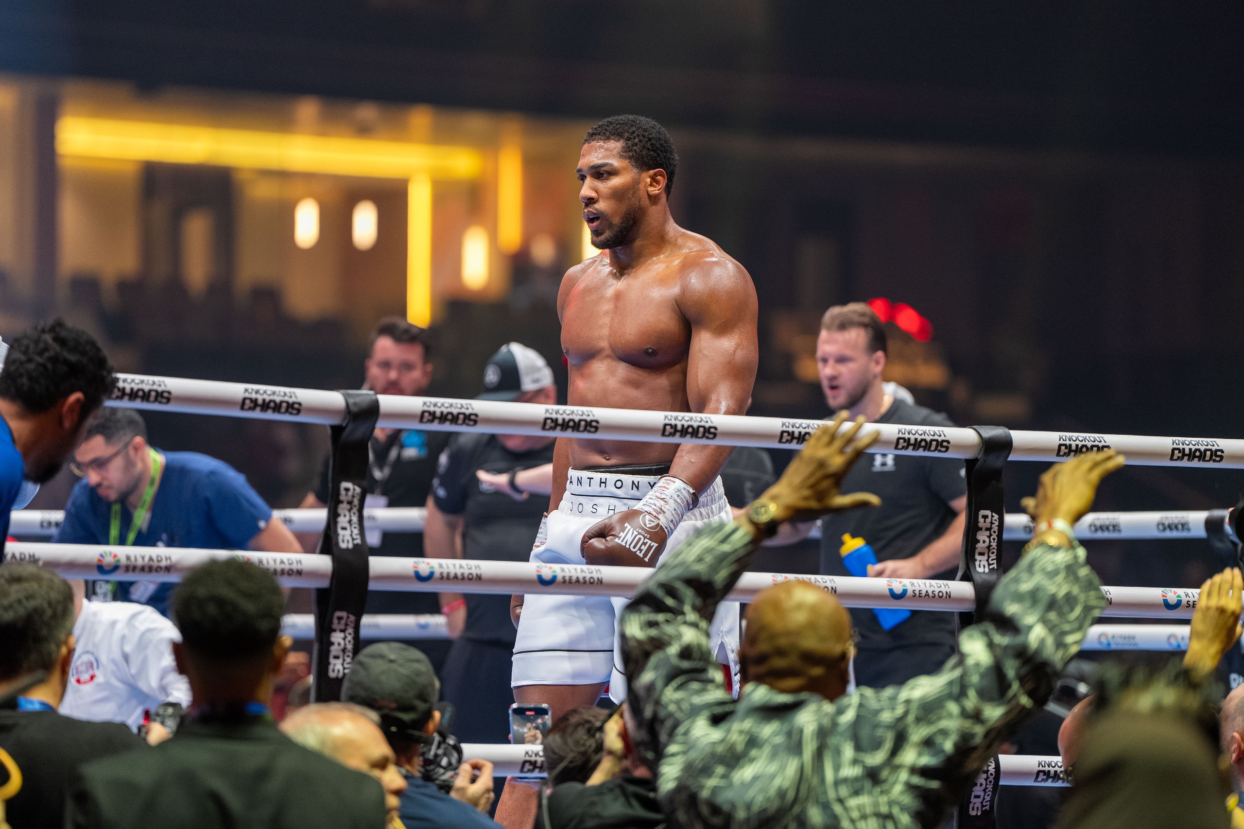 بحضور معالي المستشار تركي بن عبدالمحسن آل الشيخ، رئيس مجلس إدارة الهيئة العامة للترفيه (GEA) أُعلن موسم الرياض اليوم أنتوني جوشوا بطلًا لنزال Knockout Chaos بعد تسديده ضربتين قاضية لانجانو في أول جولتين من نزال الليلة ضد نظيره فرانسيس انجانو في منطقة Kingdom Arena في الرياض.