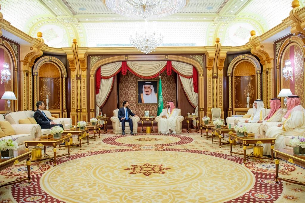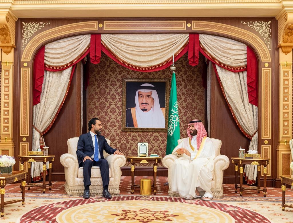 سمو ولي العهد يجتمع برئيس مجلس النواب في جمهورية #العراق ويستعرضان العلاقات الأخوية بين البلدين الشقيقين.