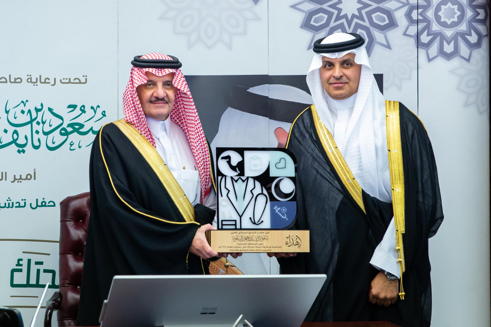 دشن صاحب السمو الملكي الأمير سعود بن نايف بن عبد العزيز أمير المنطقة الشرقية في مكتب سموه بديوان الإمارة اليوم الثلاثاء، حملة صحتك في رمضان بنسختها الرابعة، والتي تنظمها المديرية العامة للشؤون الصحية بالمنطقة الشرقية، على مستوى مدن ومحافظات المنطقة بالتزامن مع شهر رمضان المبارك للتوعية بالسلوكيات الصحيحة في رمضان.