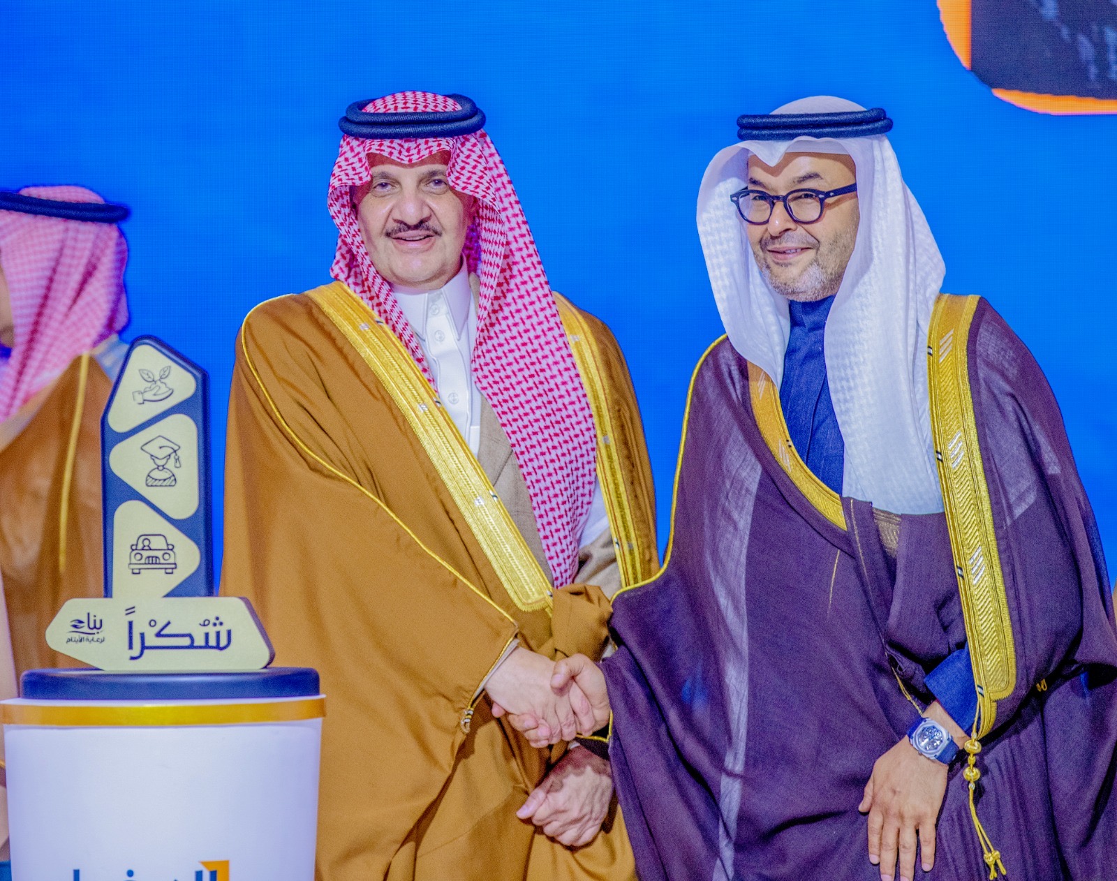 ثم شاهد الحضور عرضاً مرئياً عن مشروع الكفالة الدائمة ( أجر لا ينقطع ) ودشن سمو راعي الحفل منصة بسمة وطن المشروع الذي يساهم في علاج أسنان الأيتام على مستوى المملكة وهو مشروع وطني يهدف للتخفيف من معاناة الأيتام واليتيمات المستفيدين من خدمات الجمعيات والتعاون مع مراكز علاج الاسنان لعلاجهم مجاناً .
