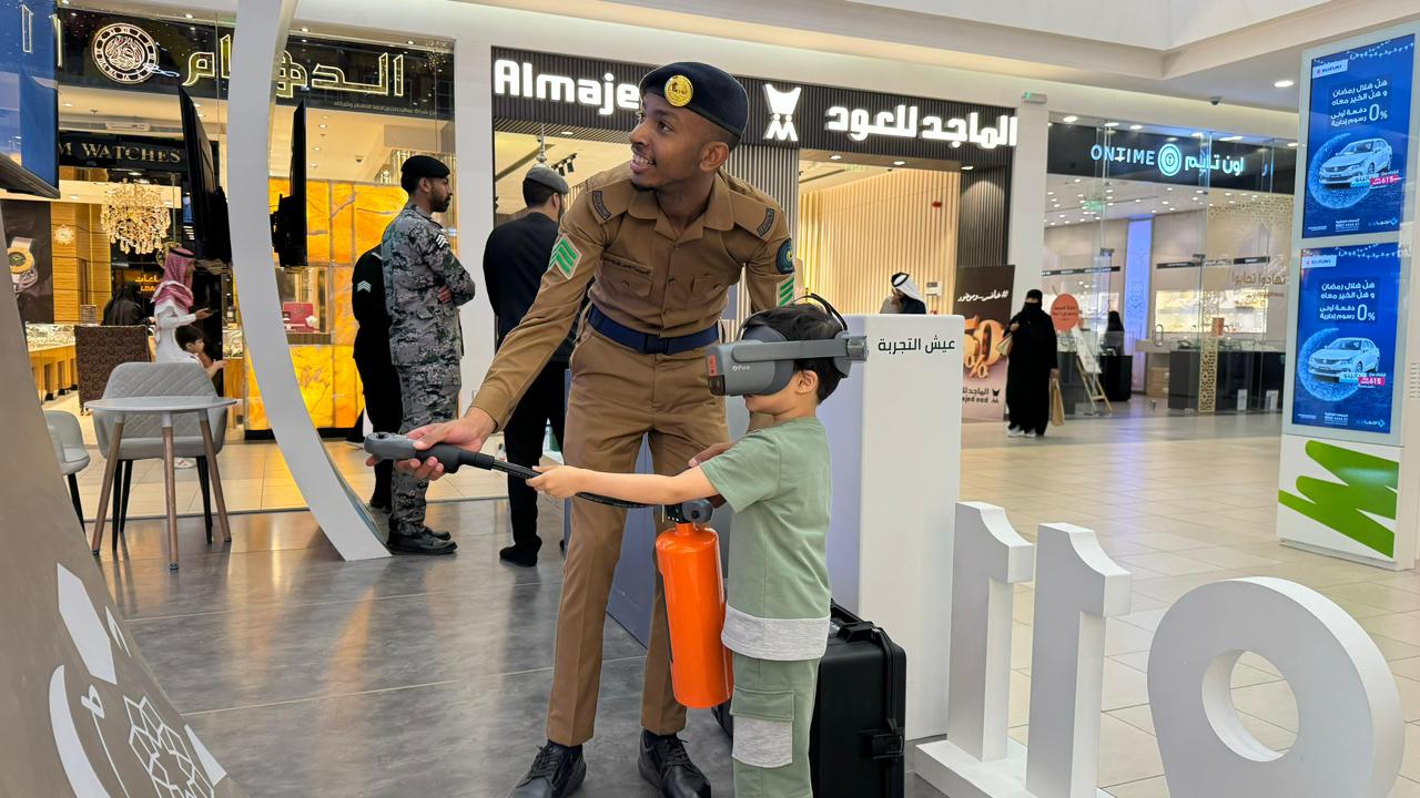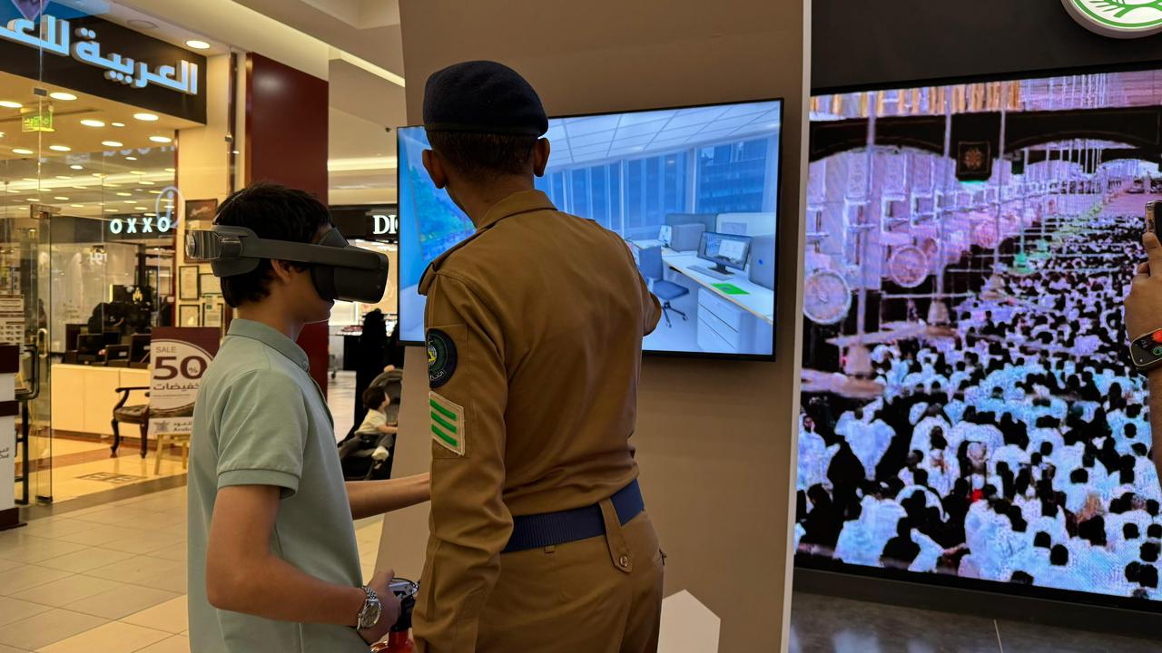 ويستعرض الدفاع المدني للزوار، المهام والخدمات التي يقدمها لضيوف الرحمن، وتعزيز السلامة الوقائية وأنظمة السلامة والحماية من الحريق، ومخاطر التوصيلات الكهربائية وزيادة الأحمال.