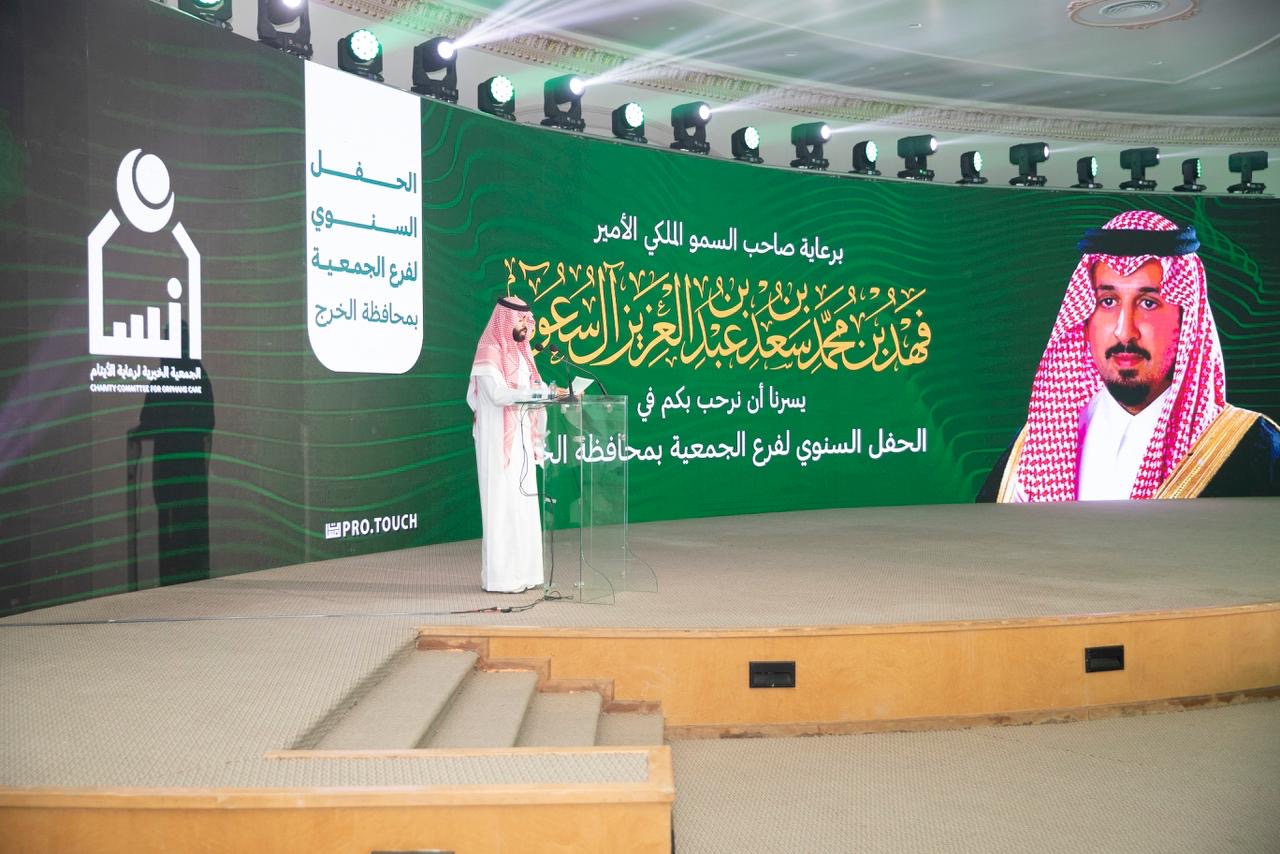 رعى صاحب السمو الملكي الأمير فهد بن محمد بن سعد بن عبدالعزيز محافظ الخرج مساء اليوم الأحد الحفل السنوي لفرع جمعية "إنسان" بالمحافظة، بحضور عدد من شركاء إنسان وعدد من مسؤولي المحافظة، في قاعة الورود للاحتفالات .