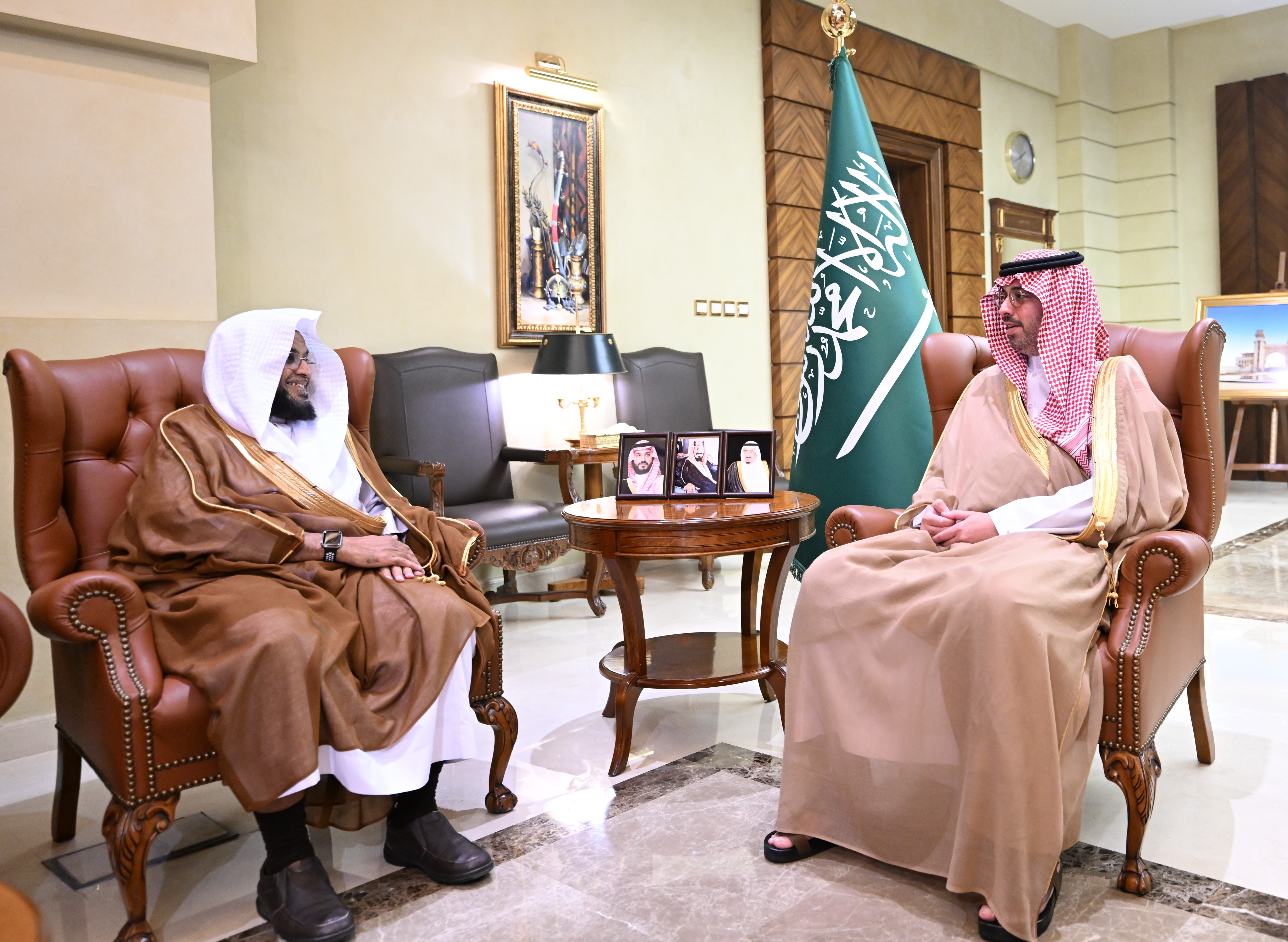 واطلع سموّه خلال الاستقبال على الخطة التنفيذية للبرنامج التوعوي "لعلكم تتقون" خلال شهر رمضان المبارك، والتي تهدف إلى تعزيز فضل الصيام والقيام، وبيان الأحكام الشرعية المتعلقة بالشهر الكريم، وإيضاح فضل العشر الأواخر وليلة القدر، والحث على أداء زكاة الفطر وبيان فضلها، وبيان أحكام العيد والتحذير من المخالفات الشرعية.