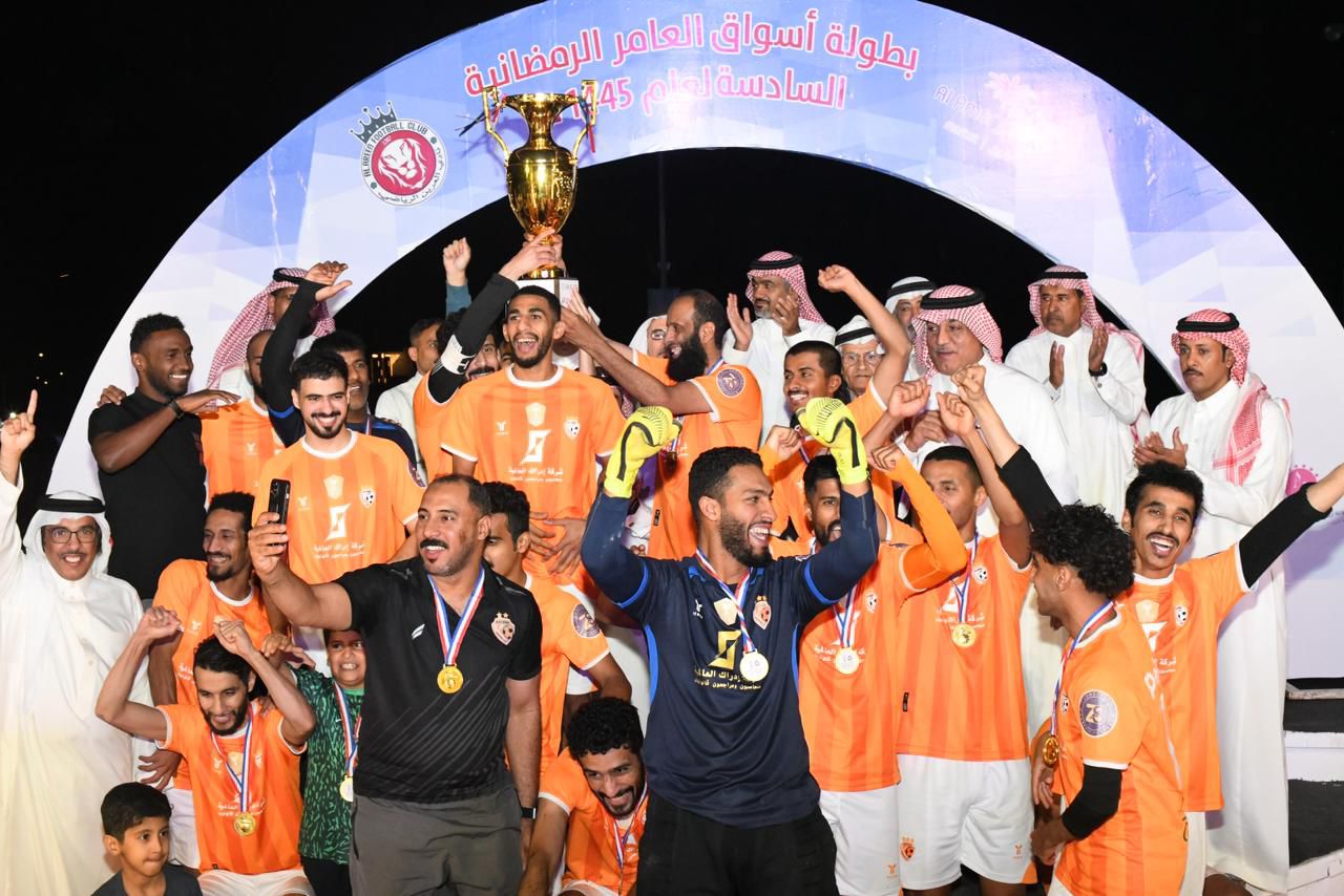 توج فريق كاظمة بلقب بطولة " أسواق العامر " الرمضانية لعام 1445هـ والتي ينظمها نادي العرين في نسختها السادسة وذلك بعد أن تمكن من الفوز في المباراة النهائية أمام فريق العرين وبنتيجة هدفين مقابل هدف واحد في مباراة مثيرة أوفت بكامل وعودها وبقيادة الحكم الدولي شكري الحنفوش عندما تقدم كاظمة أولاً في الدقيقة 10 من الشوط الأول عن طريق اللاعب حسين العبد اللطيف فيما عادل العرين سريعاً عند الدقيقة 17 وعن طريق ركلة جزاء سجلها علي الفهيد الا أن هداف البطولة عامر الدوسري منح أفضلية الشوط الأول لكاظمة بتسجيله الهدف الثاني عند الدقيقة 34 ، ولم تتغير النتيجة في الشوط الثاني رغم محاولات العرين الجادة لإدراك التعادل و الذي اضطر مدربه لإجراء تبديلين لأهم عناصره بسبب تعرضهم للاصابة في الوقت الذي عمل مدرب كاظمة على اقفال المنطقة وتنشيط صفوف الفريق .