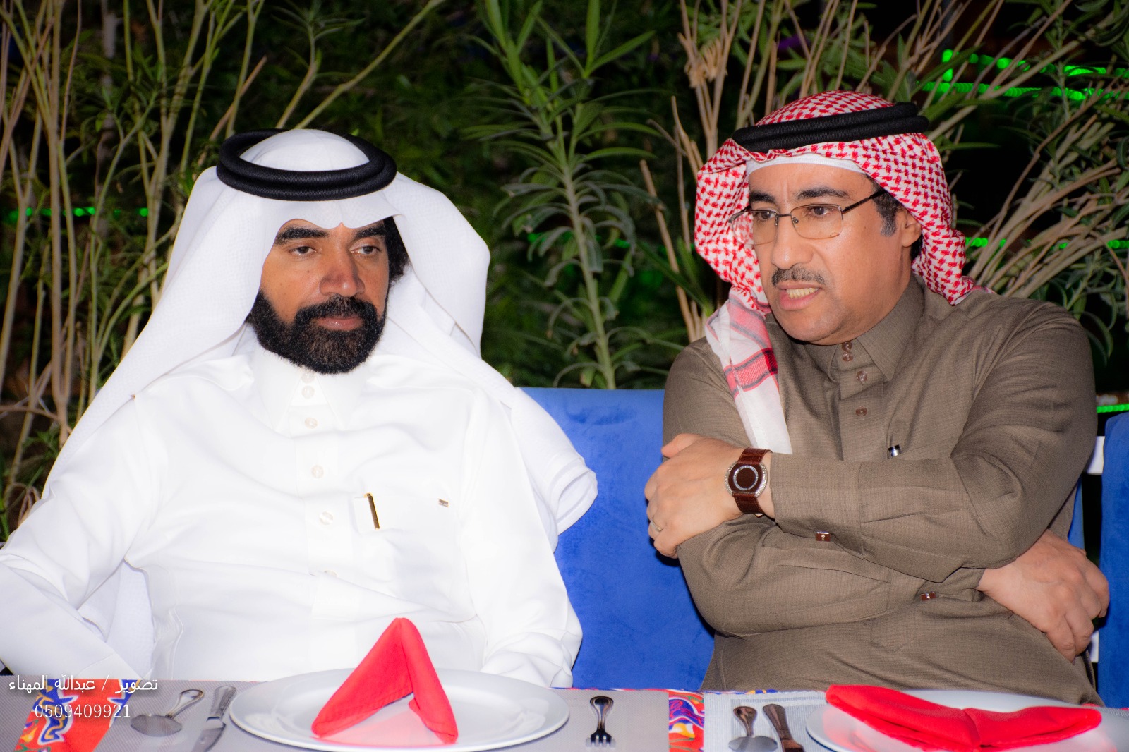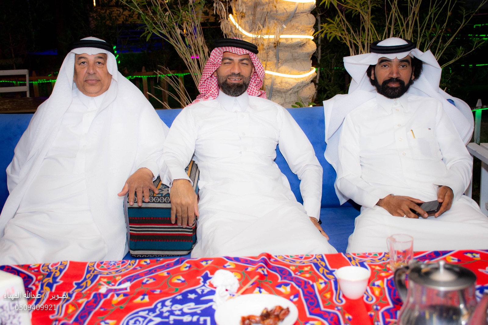بعد ذلك توجه الحضور لتناول وجبة الغبقة بين النخيل وصوت الاهازيج الرمضانيه والاناشيد الرمضانية.