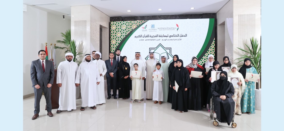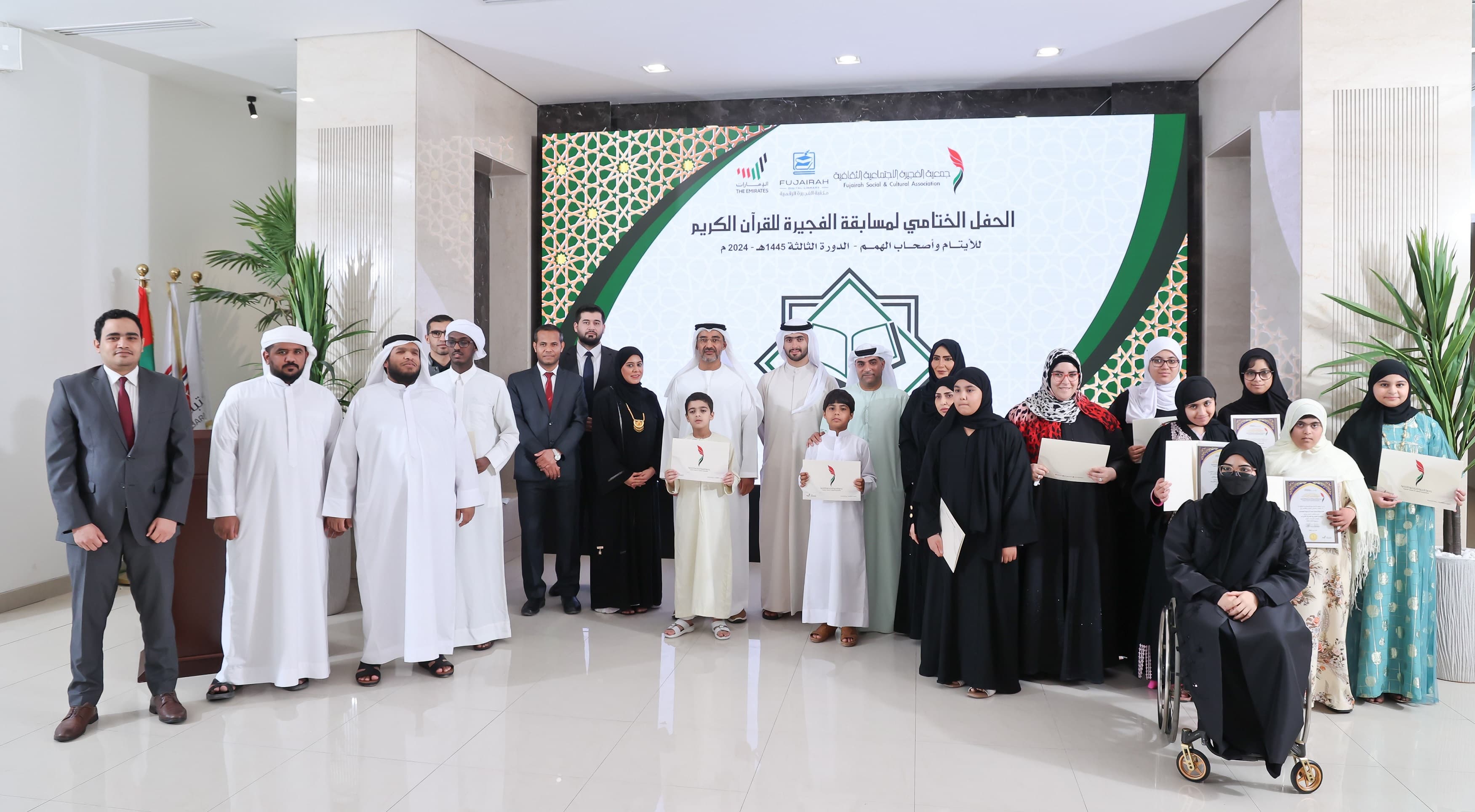 اختتمت جمعية الفجيرة الاجتماعية الثقافية مساء أمس الجمعة مسابقة الفجيرة للقرآن الكريم للأيتام وأصحاب الهمم والتي تنظمها الجمعية للسنة الثالثة على التوالي تحت شعار "اقرأ وارتق" في حفل بهيج احتضنته بحفاوة وابتهاج مكتبة الفجيرة الرقمية بحضور الشيخ حمد بن محمد بن حمد بن سيف الشرقي، وسعادة الدكتور خبير خالد الظنحاني رئيس مجلس إدارة الجمعية، والدكتورة هدى الدهماني النائب الثاني لرئيس الجمعية رئيسة اللجنة المنظمة للمسابقة، والدكتور حمد البقيشي المدير التنفيذي للجمعية، وموزة اليماحي مديرة البرامج والأنشطة بالجمعية.