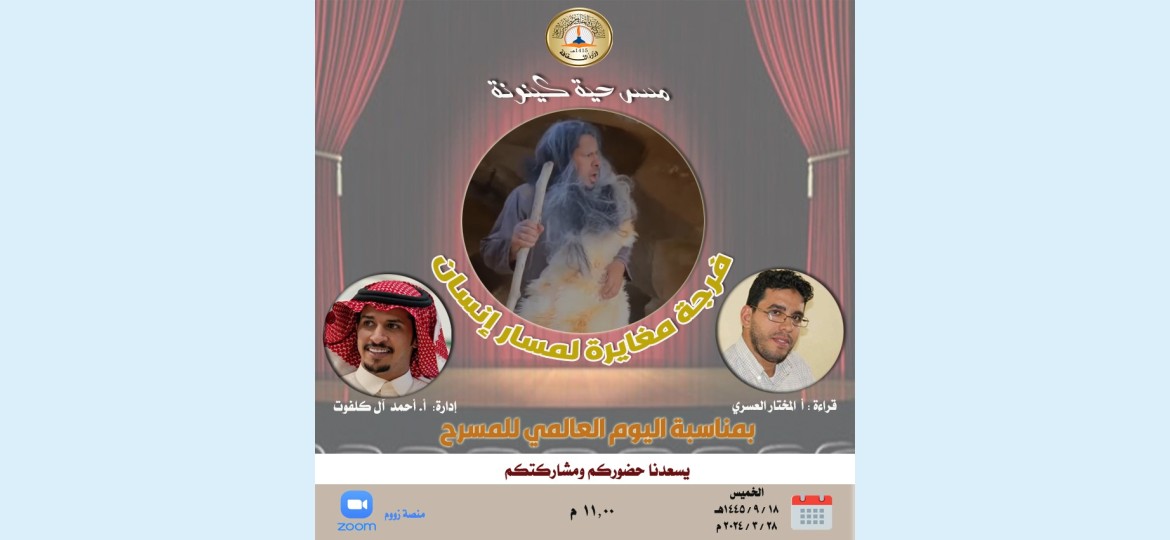 يشارك نادي الباحة الأدبي الثقافي المسرحيين في احتفالهم بمناسبة اليوم العالمي للمسرح 2024 حين يشرع نوافذ التقنية لكناقشة
