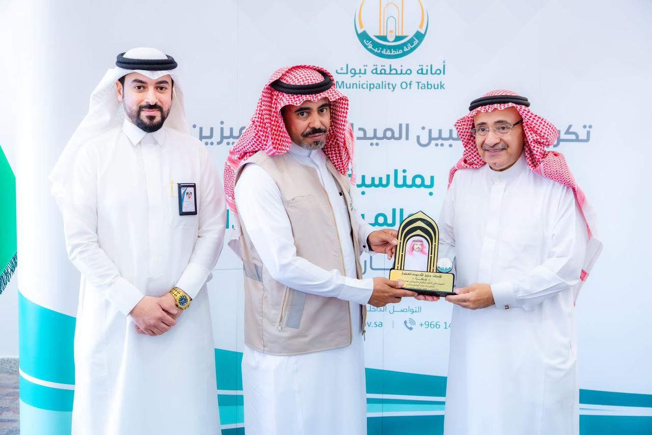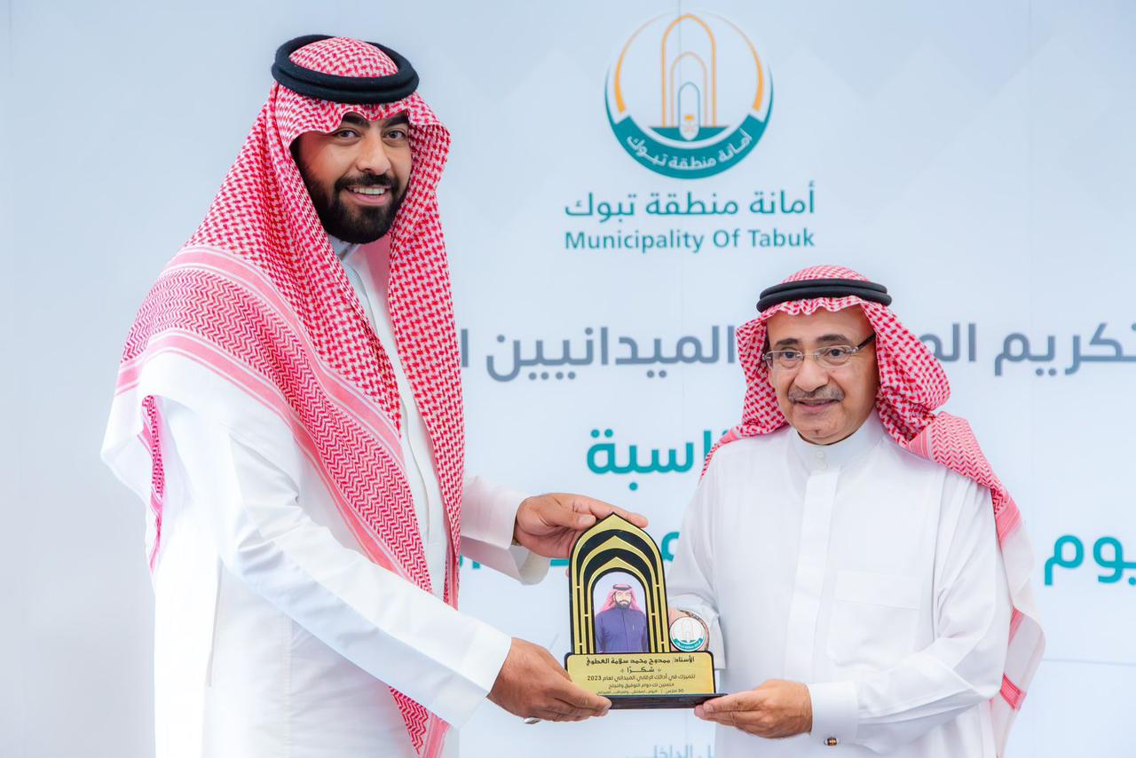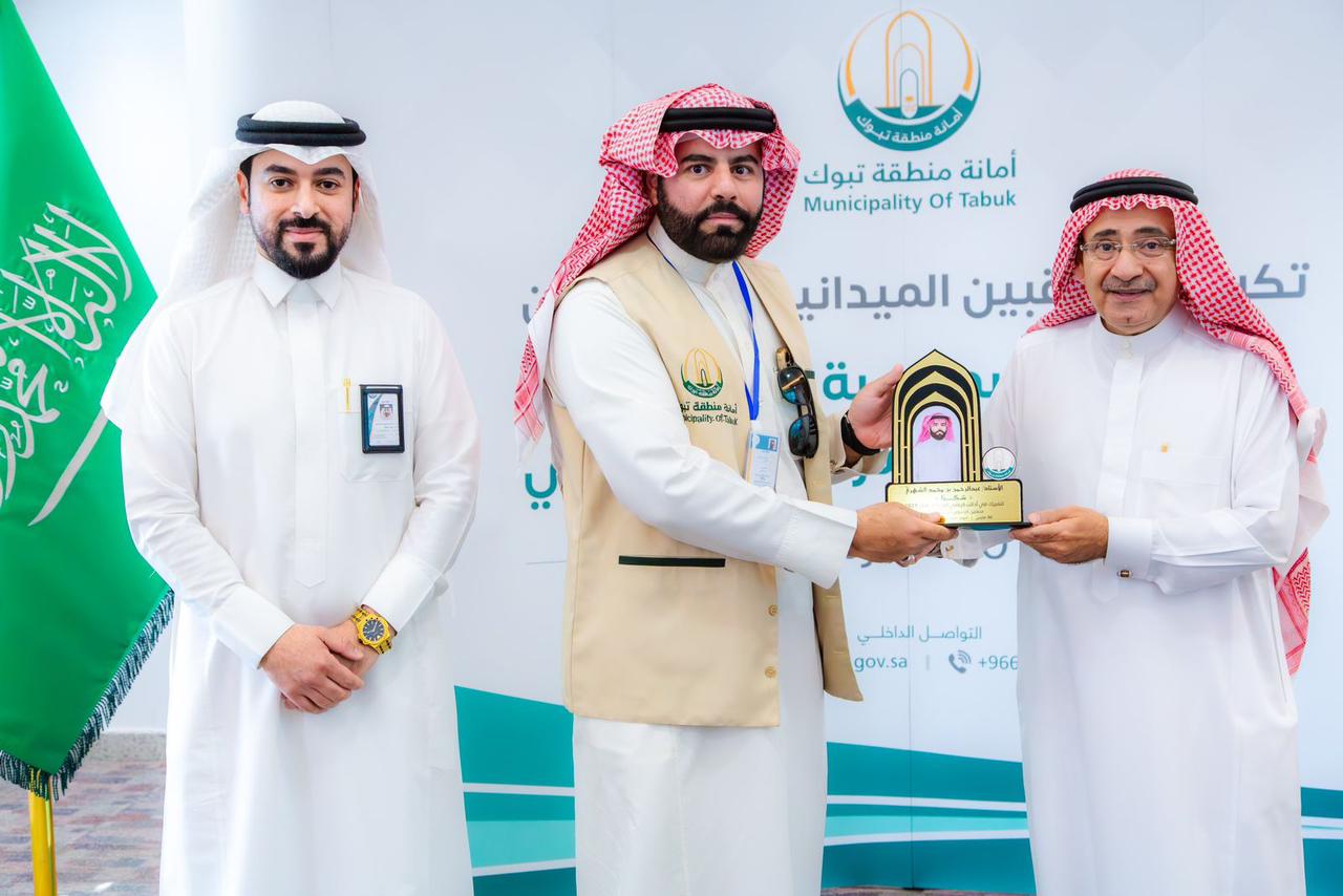 احتفاءً باليوم العالمي للمفتش والمراقب الميداني، كرّم أمين منطقة تبوك المهندس حسام اليوسف عددًا من مراقبي الأمانة المتميزين، وثمّن الدور الحيوي الذي يلعبه المراقبون الميدانيون في تحسين المشهد الحضري والرقي بجودة الحياة في المنطقة، حيث قام مراقبو الأمانة خلال عام 2023 بأكثر من 260 ألف زيارة ميدانية متنوعة، مسجلين بذلك تحسناً كبيراً في رفع مستوى الوعي ونسب الامتثال لدى المنشآت الخاصة والتجارية.