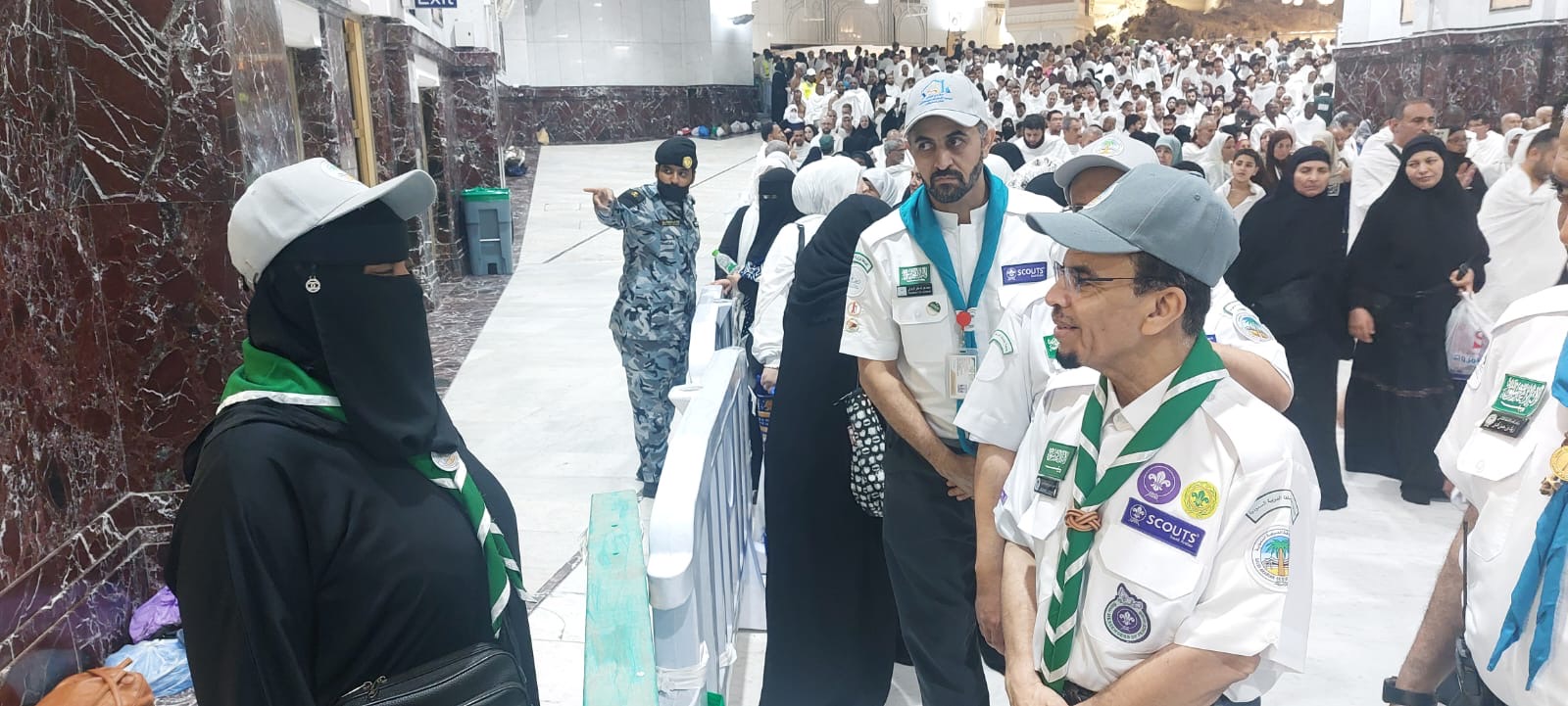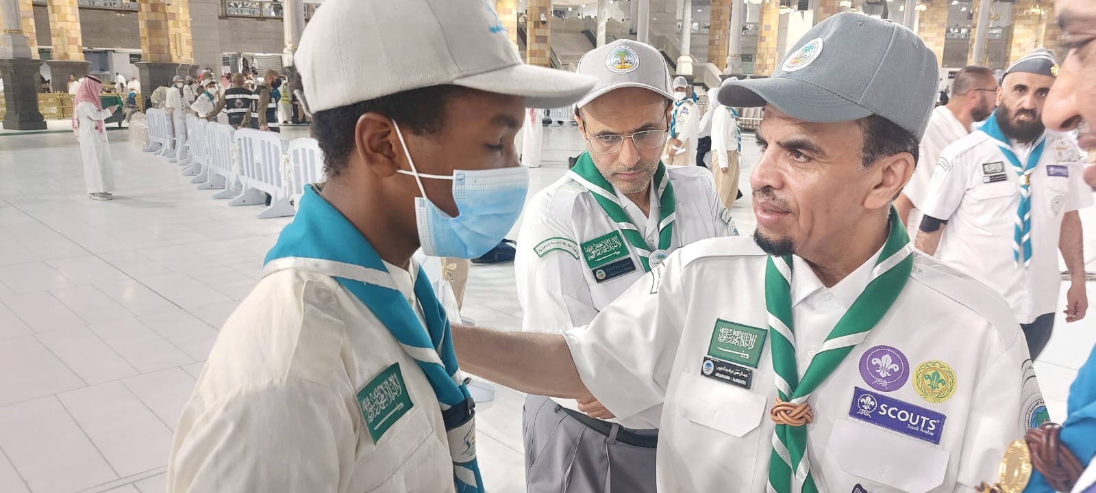جاء ذلك خلال جولة قام بها اليوم مع المُدير العام للتعليم بمنطقة مكة المكرمة، المشرف على الخدمات الكشفية التي تقدم للمعتمرين بالمسجد الحرام الأستاذ عبدالله بن سعد الغنام، شملت مركز بادر الكشفي للأعمال التطوعية، وكشافة وزارة التعليم المتطوعين مع الهيئة العامة لشؤون الحرمين، وشهد الجهود المبذولة التي تقوم بها كشافة التعليم في مجال دفع العربات، و تنظيم المسارات من والى صحن المطاف، كما التقى فتيات كشافة التعليم في التطوع الصحي، والجوالة المشاركين في التنظيم بمنطقة المسعى والمساندين للأمن العام.