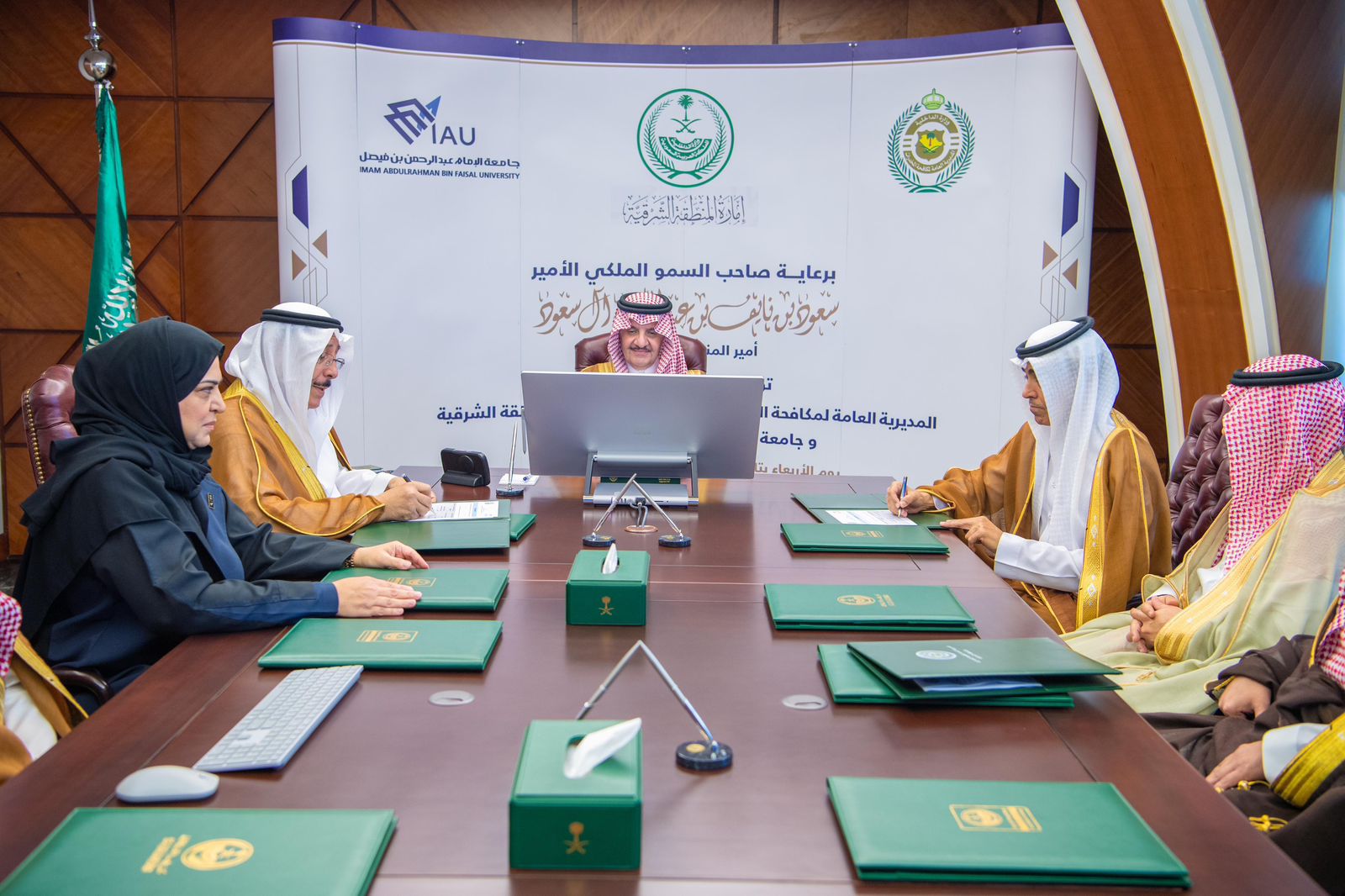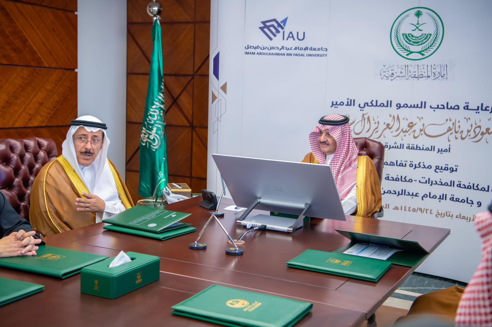 رعى صاحب السمو الملكي الأمير سعود بن نايف بن عبدالعزيز أمير المنطقة الشرقية في مكتب سموه بديوان الإمارة اليوم الأربعاء توقيع مذكرة تفاهم بين إدارة مكافحة المخدرات بالمنطقة الشرقية وجامعة الإمام عبد الرحمن بن فيصل في مجال تعزيز التوعية الوقائية لحماية المجتمع من آفة المخدرات .