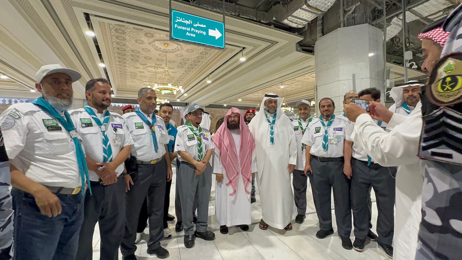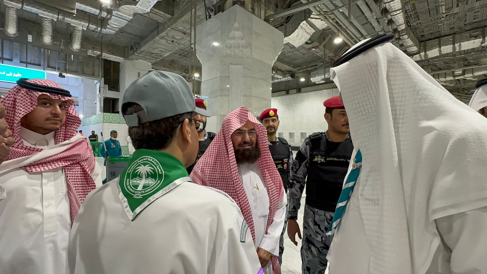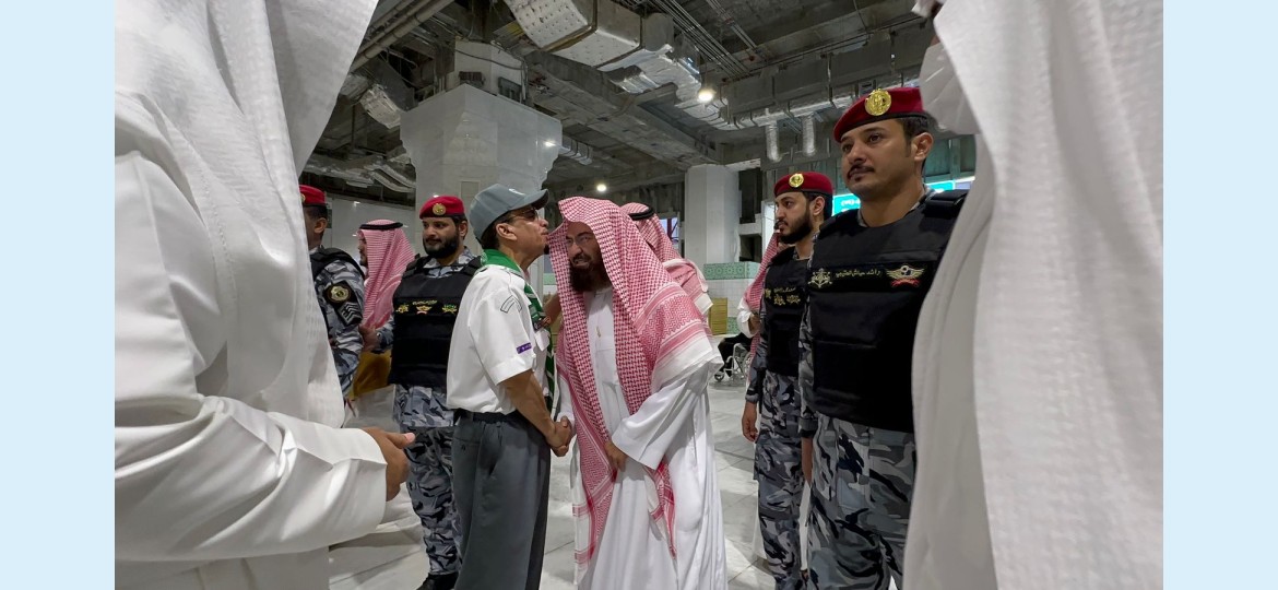 وأثنى خلال لقائه أمس, نائب رئيس جمعية الكشافة العربية السعودية الدكتور عبدالرحمن بن إبراهيم المديرس، والمُدير العام للتعليم بمنطقة مكة المكرمة، المشرف على الخدمات الكشفية التي تقدم للمعتمرين بالمسجد الحرام الأستاذ عبدالله بن سعد الغنام وبحضور عددٍ من القيادات الكشفية والكشافين المتطوعين بالخدمة في الحرم المكي الشريف، على دورهم التطوعي الذي يقومون به في خدمة ضيوف الرحمن، مؤكدًا أن الخدمات التطوعية التي تقدم من أفراد الكشافة في الحرمين الشريفين أسهمت مع باقي الجهود المبذولة من الجهات والقطاعات الحكومية المعنية، في تمكين زوار الحرمين، من أداء مناسكهم وعباداتهم بكل يسر وسهولة، وبطمأنينة وروحانية، لتحقيق تطلعات حكومة خادم الحرمين الشريفين الملك سلمان بن عبدالعزيز آل سعود ، وصاحب السمو الملكي الأمير محمد بن سلمان بن عبدالعزيز آل سعود، ولي العهد رئيس مجلس الوزراء، - حفظهما الله -، الرامية إلى تحقيق الراحة والطمأنينة لقاصدي وزوار المسجد الحرام والمسجد النبوي الشريف.