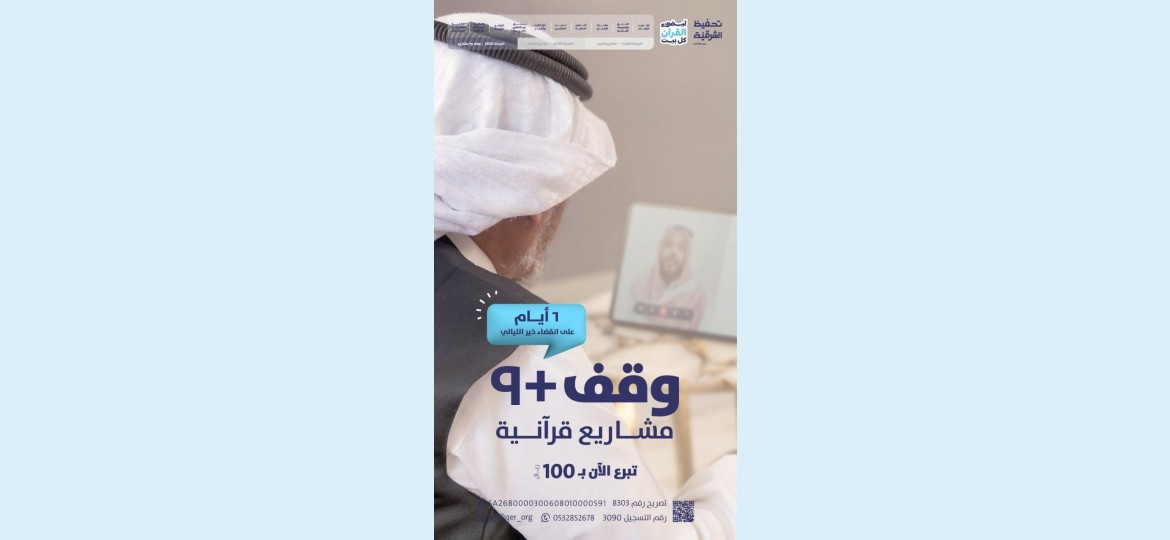 أطلقت جمعية تحفيظ الشرقية، المرحلة الثالثة، من برنامج ( سفير القرآن ) ليضيئ القرآن كل بيت، لدعم تعليم القرآن الكريم وحفظًا للآلاف من الطلاب بمختلف أعمارهم، داعية أهل الخير للمساهمة بدعم البرنامج ليكونوا جزءًا من الرحلة والسباق إلى العتق والأجر، بعشرة أبواب للخير وهي وقف وتسعة مشاريع قرآنية، عبر الرابط