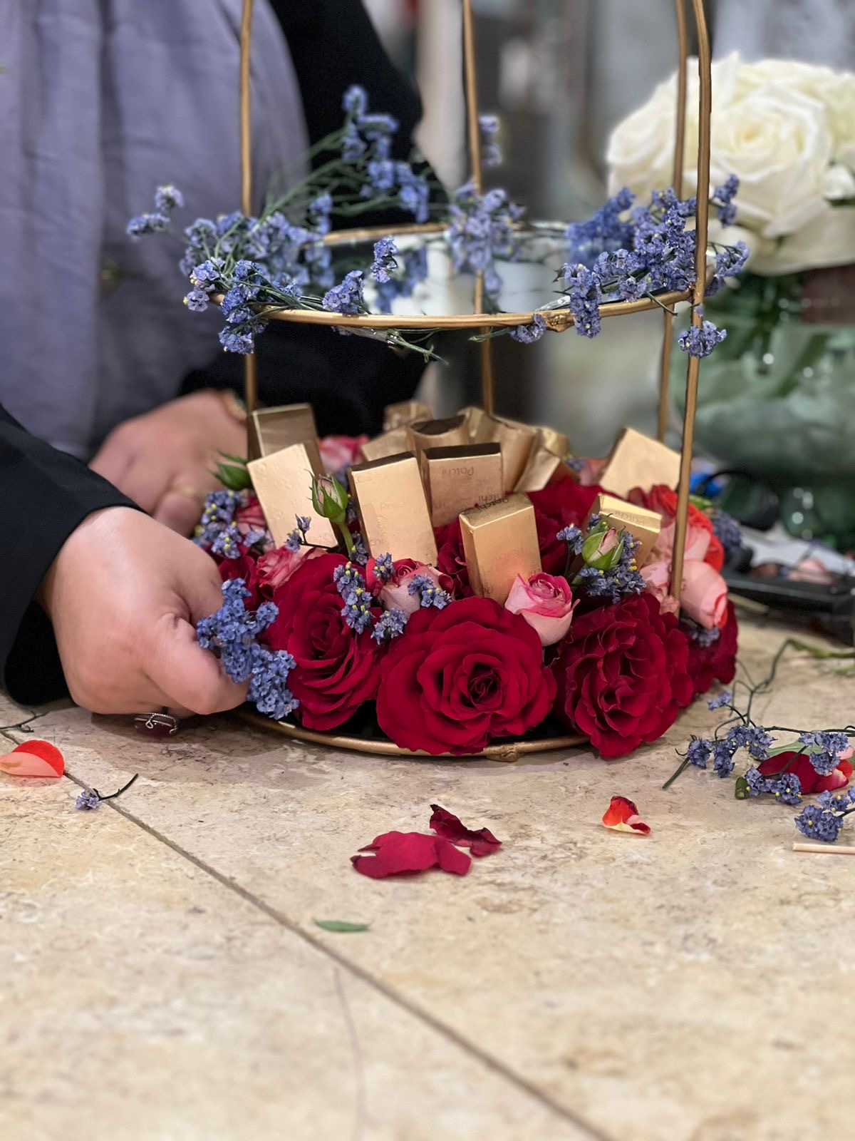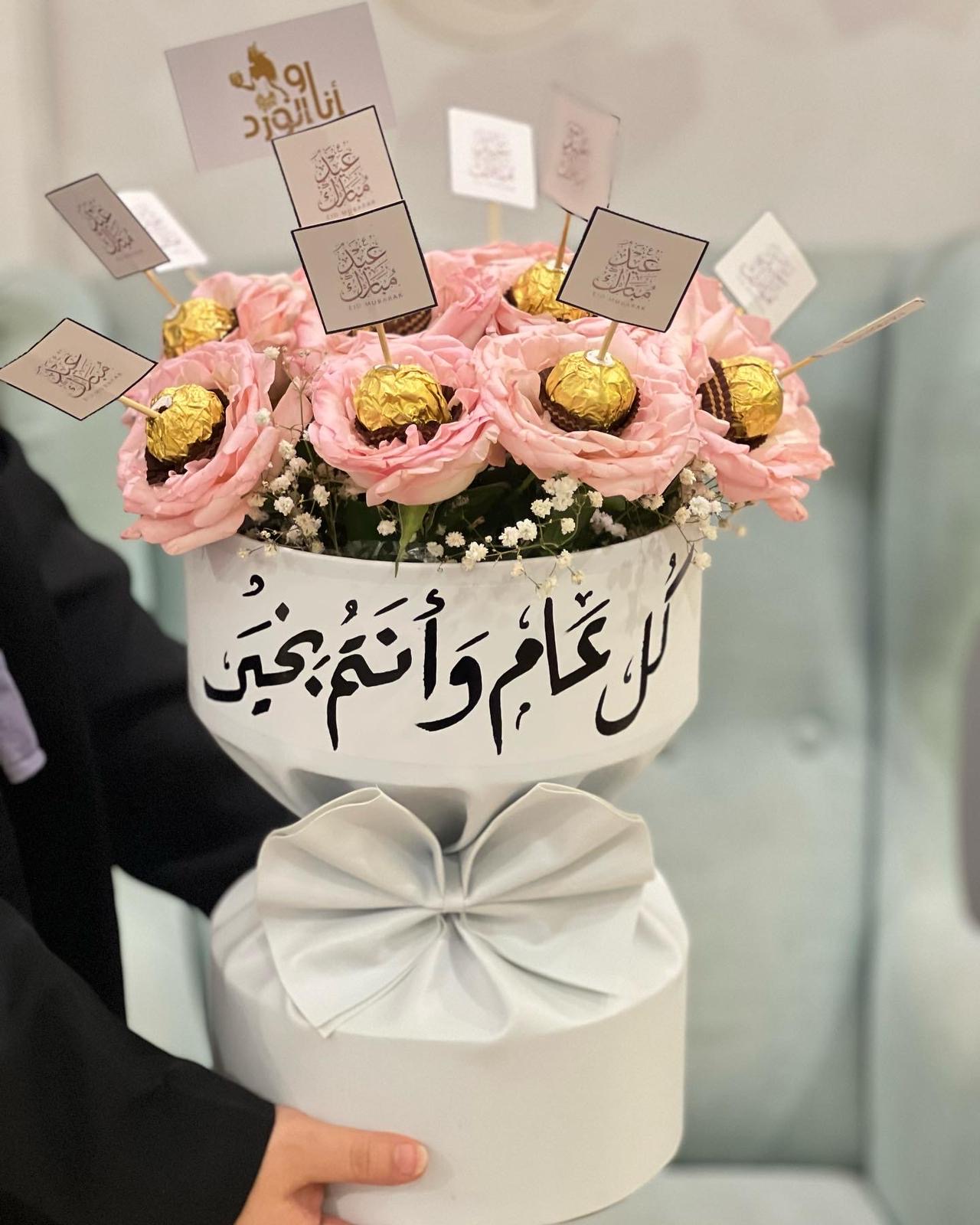 فنجد محلات الورود والزهور عليها إقبال من المتسوقين بهذه الليالي لتزيين طاولات وتقديمات العيد بها وكذلك نجد أنه يكون للإهداء وللورد والزهور عشاقه في أيام العيد والورد هو أجمل مايهدى بين الأحبة والأصدقاء والأهل والأزواج وتغنى الشعراء بجمال الورد وبتشبيهاته الجميلة وهذا شاعر يشبه المحبوب بالورد يقول في هذا البيت: