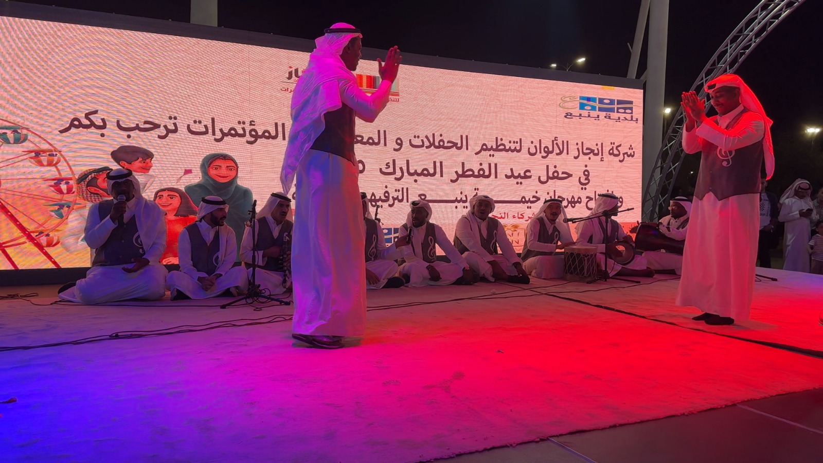 ومن جهة ثانية تتواصل فعاليات مهرجان العيد الذي تنظمه بلدية ينبع بمقر منطقة الاحتفالات بكورنيش ينبع، وتشمل الفعاليات فقرة الفنون الشعبية والعاب الأطفال وبرنامج مسابقات وجوائز، واستعراض للشخصيات الكرتونية المحببة لدى الأطفال وبمشاركة فرق عالمية متخصصة في هذه العروض.