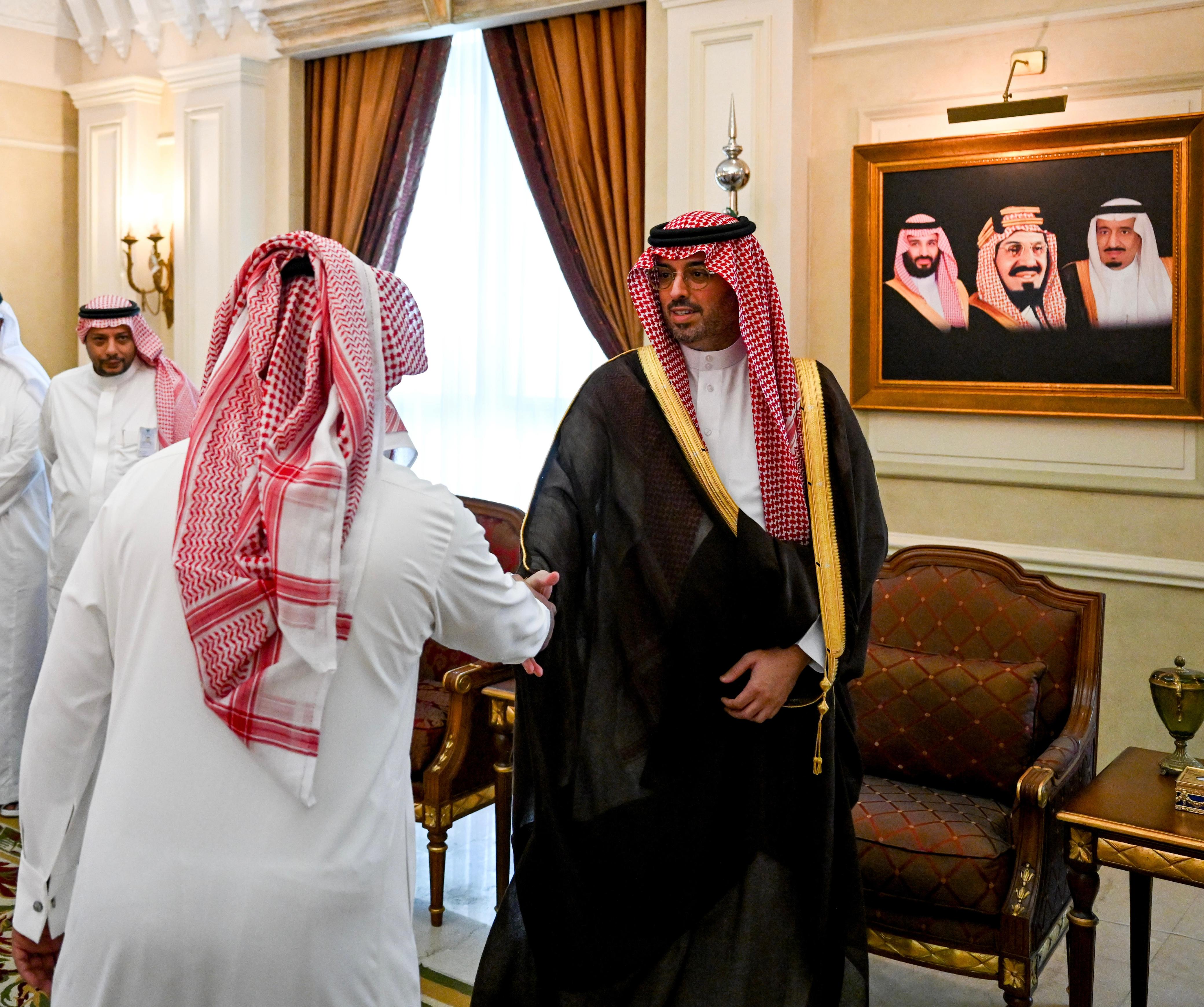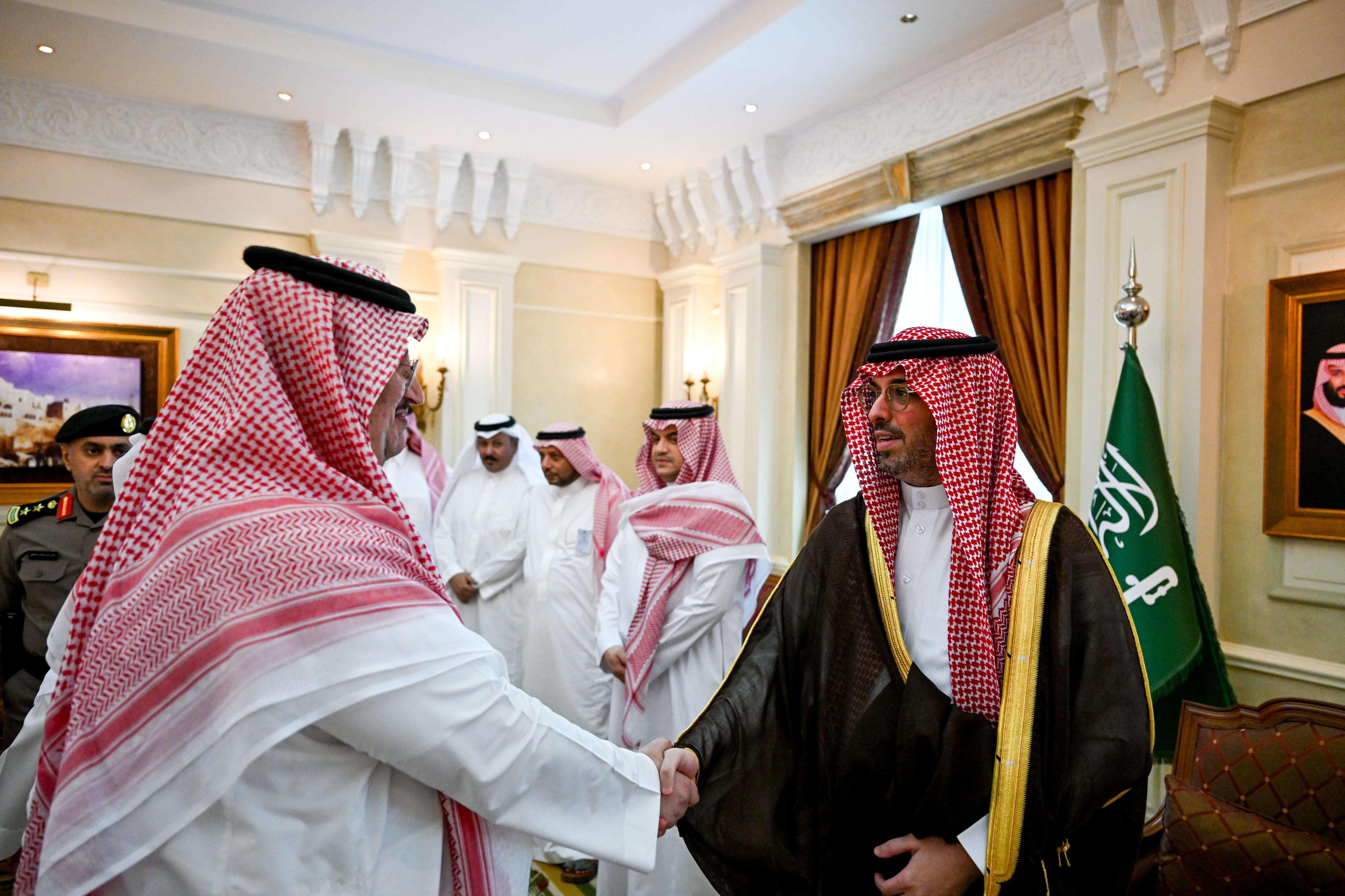 استقبل صاحب السمو الأمير سعود بن عبدالله بن جلوي محافظ جدة، بمقر المحافظة اليوم، منسوبي المحافظة والمراكز التابعة لها الذين قدموا للسلام على سمُوه وتهنئته بعيد الفطر المبارك.