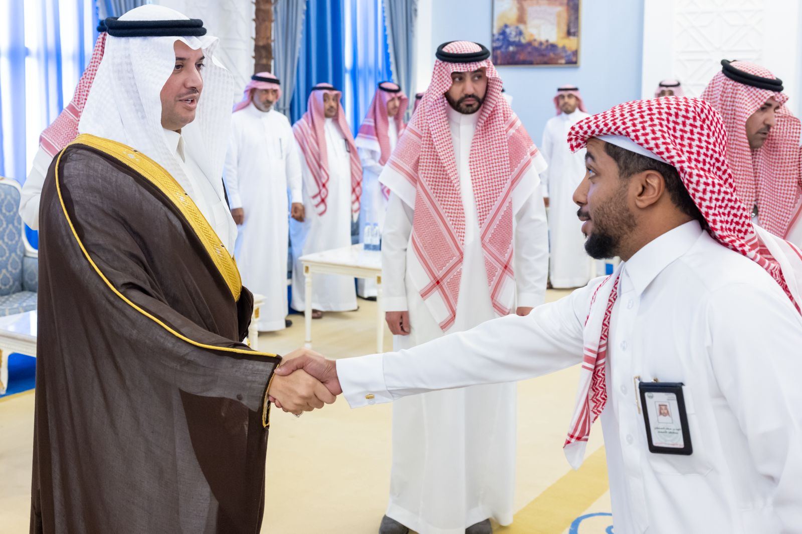 وحث سموّه خلال اللقاء جميع منسوبي المحافظة على الاجتهاد وبذل المزيد من الجهد في سبيل الارتقاء بمهام العمل ورفع مستوى الإنتاجية، بما يخدم المواطن والمقيم وفق مستهدفات رؤية المملكة 2030، مشيدًا بالمؤشرات والنتائج الإيجابية الملموسة في أعمال المحافظة.