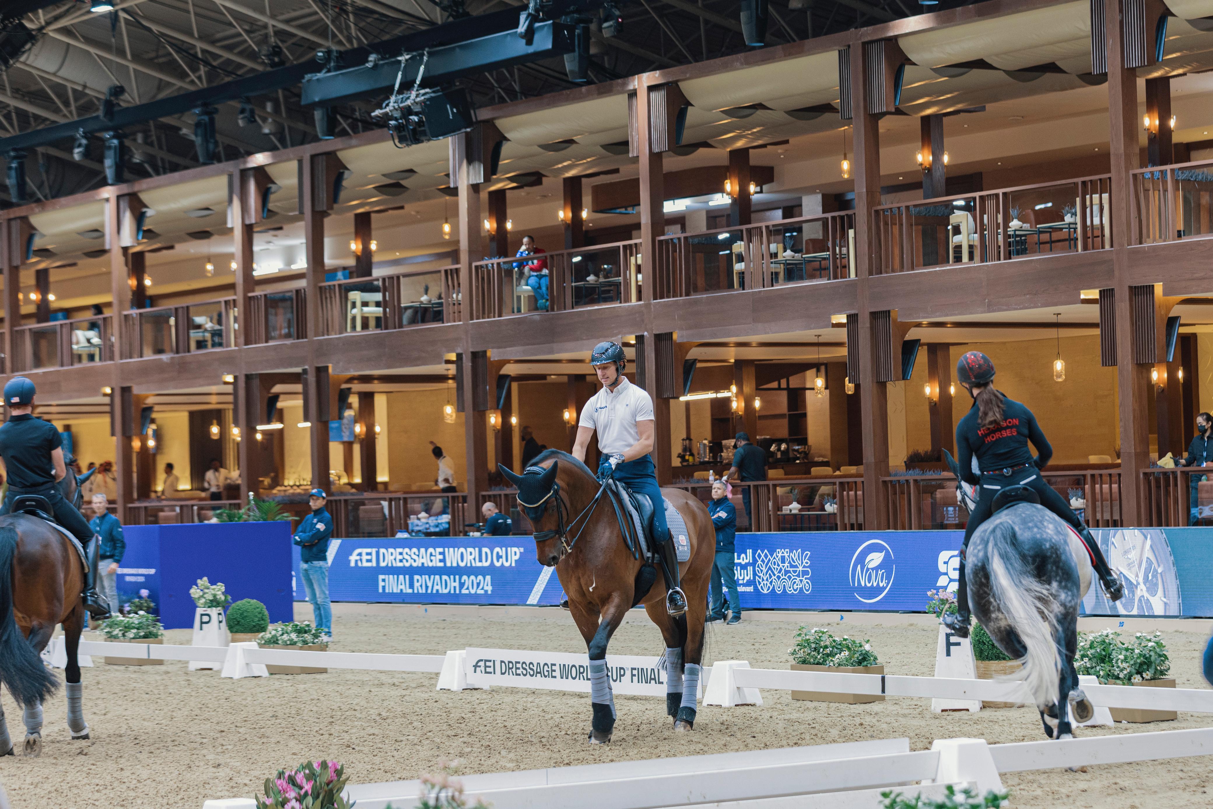 تنطلق في الرياض غداً الأربعاء فعاليات النسخة الـ 45 من بطولة كأس العالم لقفز الحواجز والترويض 2024 على أرض مركز الرياض الدولي للمؤتمرات والمعارض، وعلى مدى أربعة أيام بمشاركة 51 فارس وفارسة بـ 60 جواد يمثلون 24 دولة من بينهم الفرسان المصنفين الستة الأوائل على التوالي في قائمة التنصيف العالمي في قفز الحواجز.