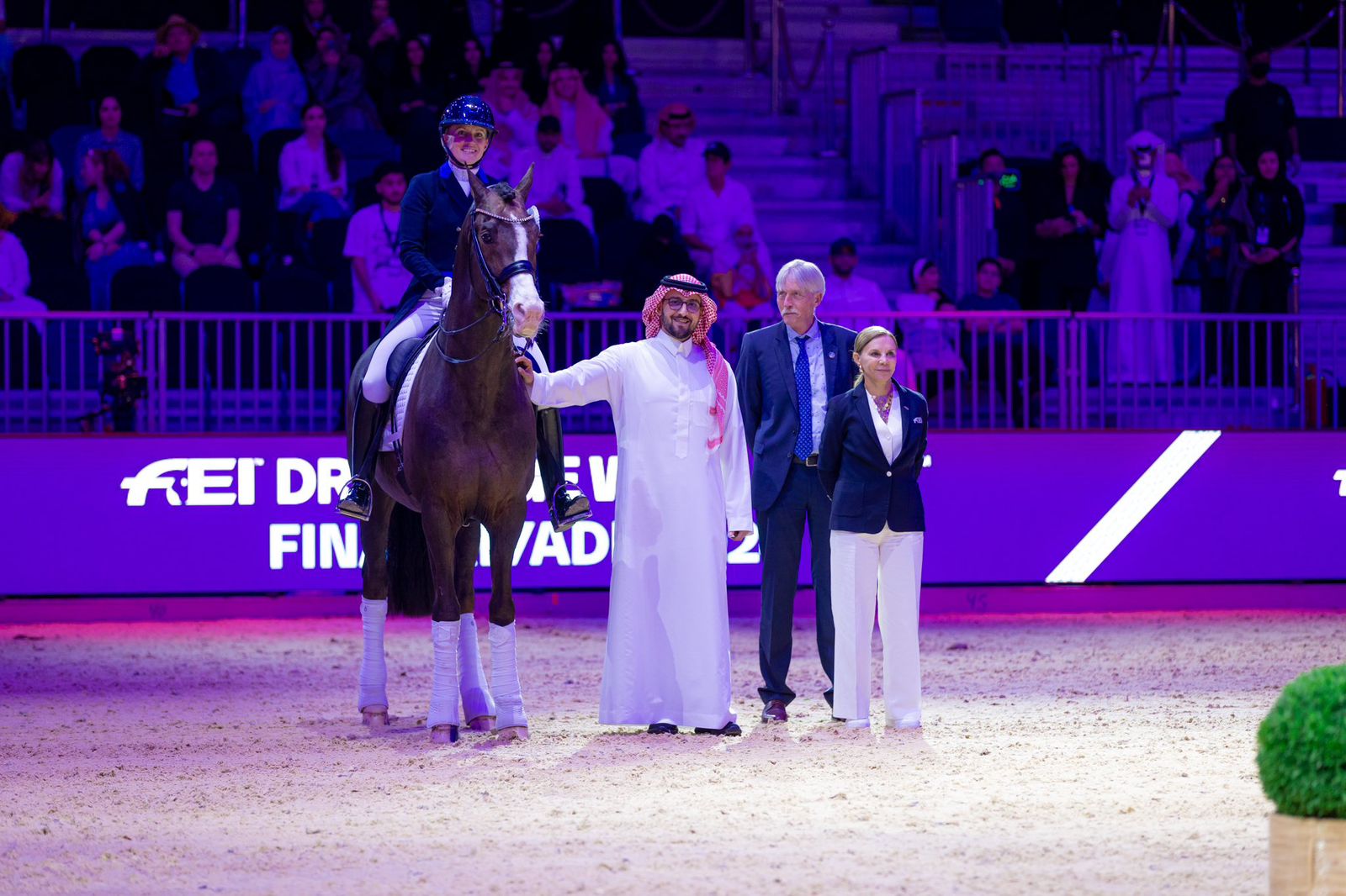 توج صاحب السمو الأمير عبد الله بن فهد بن عبد الله رئيس مجلس إدارة الاتحاد السعودي للفروسية، السويدي هنريك فون إيكيرمان بلقب شوط السرعة في قفز الحواجز (ارتفاع ـ 1.60 متر)، والفارسة البريطانية شارلوت فراي بلقب شوط الجائزة الكبرى للترويض، وذلك في اليوم الافتتاحي من بطولة كأس العالم لقفز الحواجز والترويض 2024.