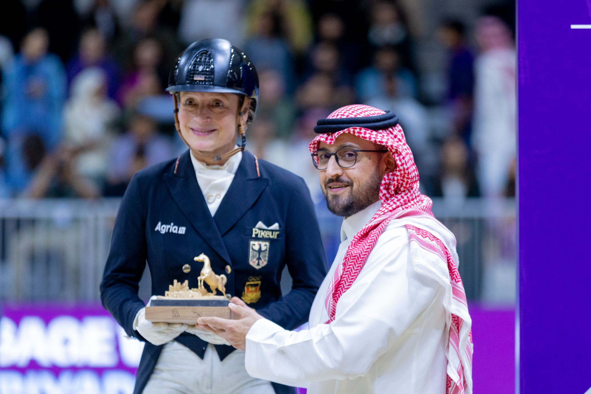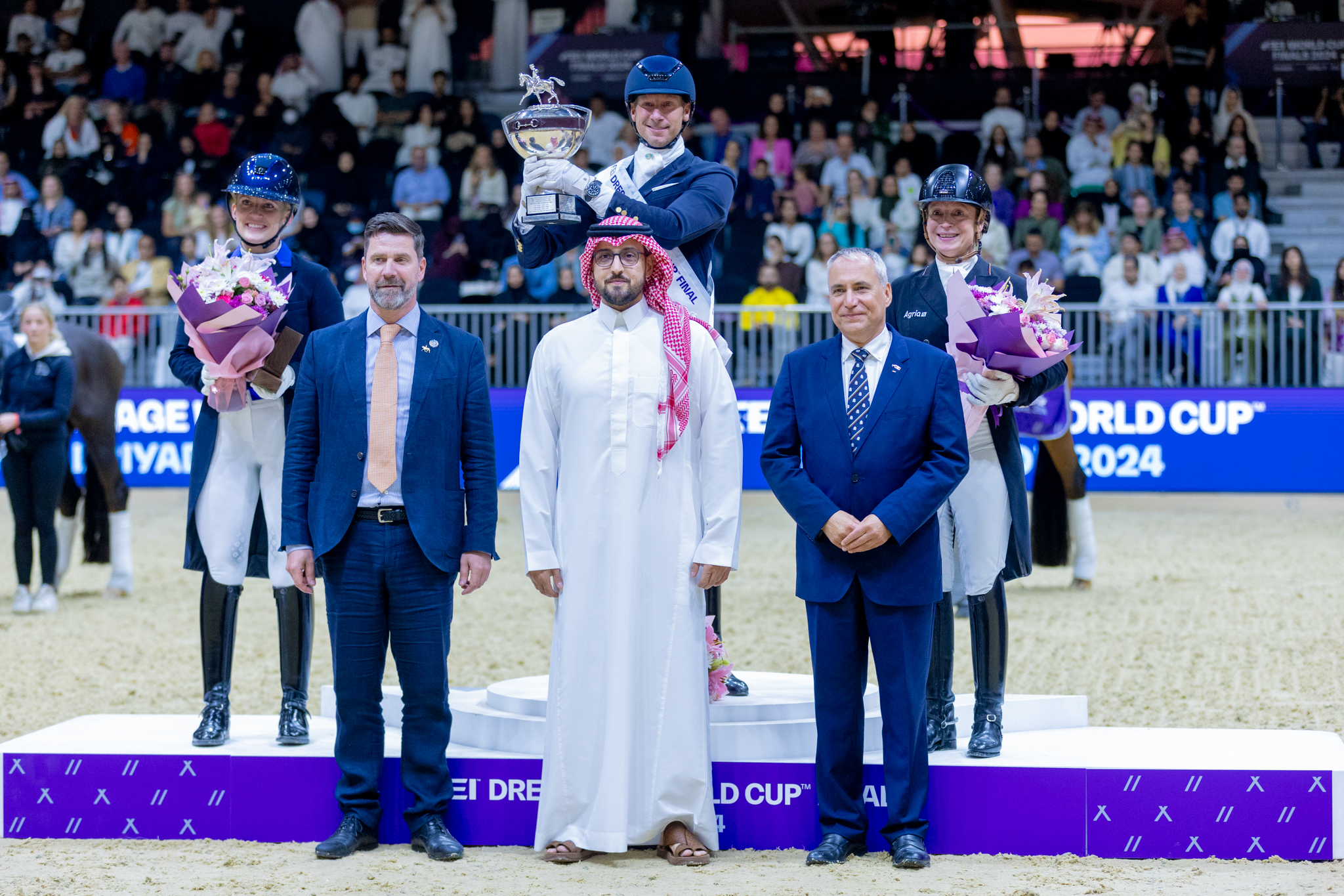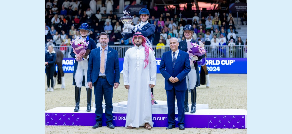 توج صاحب السمو الأمير عبد الله بن فهد بن عبد الله رئيس مجلس إدارة الاتحاد السعودي للفروسية بحضور البلجيكي إنغمار دي فوس رئيس الاتحاد الدولي للفروسية، الفارس السويدي باتريك كيتل بلقب النسخة الـ 37 في كأس العالم للترويض 2024، وذلك قبل يوم من ختام بطولة كأس العالم لقفز الحواجز والترويض 2024 والمقامة حالياً على أرض مركز الرياض الدولي للمؤتمرات والمعارض في الرياض.