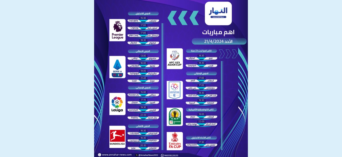 يستضيف ريال مدريد برشلونة في كلاسيكو الدوري الاسباني ، وفيما يلي أبرز المباريات :
